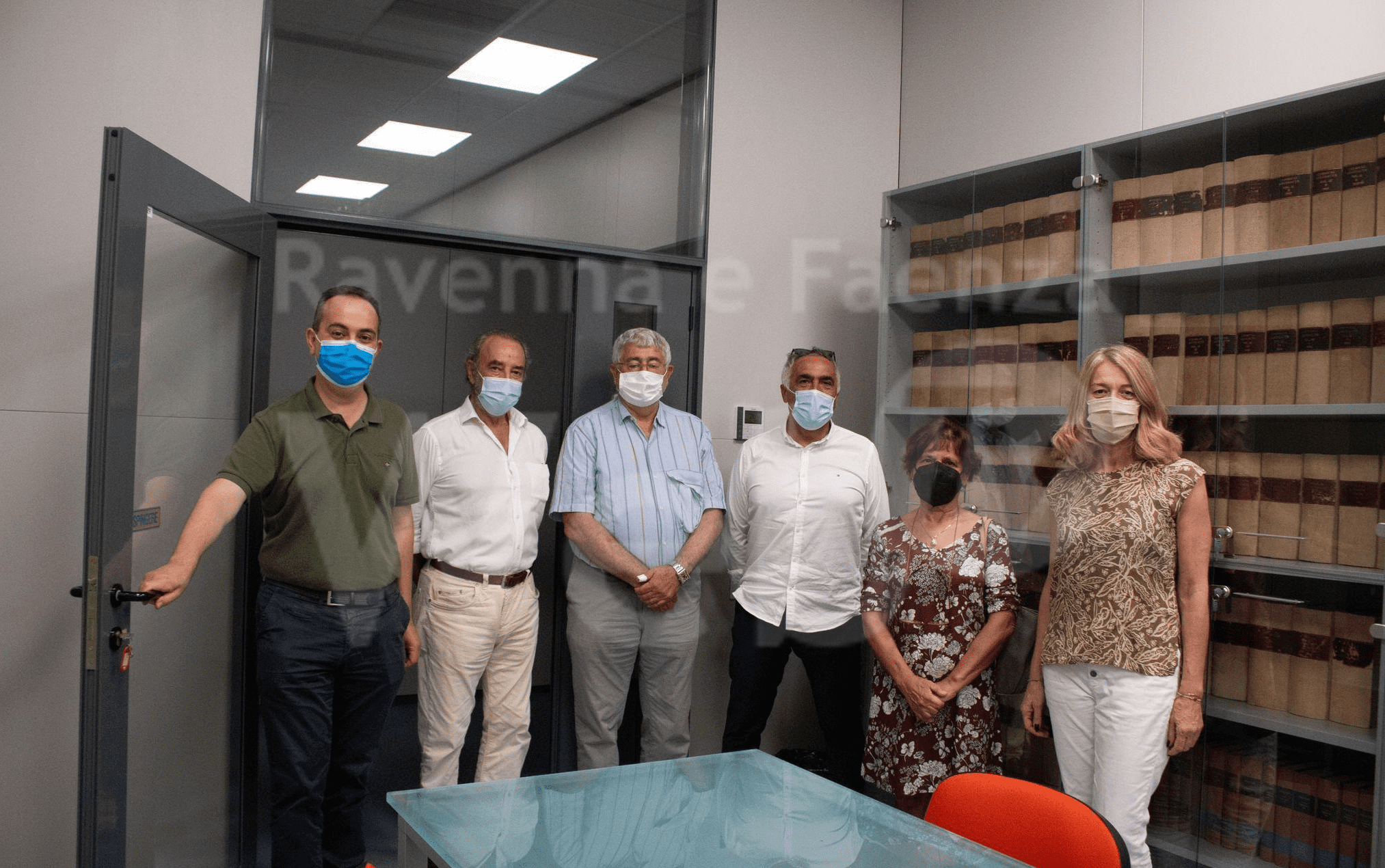 Ieri l’assessore allo Sviluppo economico, Massimo Cameliani, l’amministratore delegato della Cabot Italia Spa, Roberto Ballardini, società che ha finanziato il restauro, Sergio Baroni, presidente Fondazione ITSTEC, Andrea Contin, direttore del Centro Ricerca Ambiente Energia e Mare, Mariangela Vandini, responsabile del laboratorio diagnostico del Dipartimento di Beni Culturali Università di Bologna, Lilia Pellizzari della Fondazione ISTEC si sono recati al Centro ricerca dove i volumi sono stati riposti in una apposita scaffalatura in una sala riunioni.