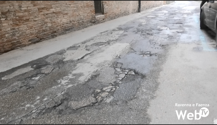 Asfalto deteriorato in diverse vie del centro storico, nel quartiere che porta i colori del Rione Nero. Via Bertucci, via Pezzi, via Seminario, via Sarti, via Battaglia, via Giangrandi, via Sant’Ippolito, via Fadina, via della Croce sono caratterizzate da diverse buche. In diversi punti, l’asfalto ammalorato ha riportato alla luce la vecchia pavimentazione.