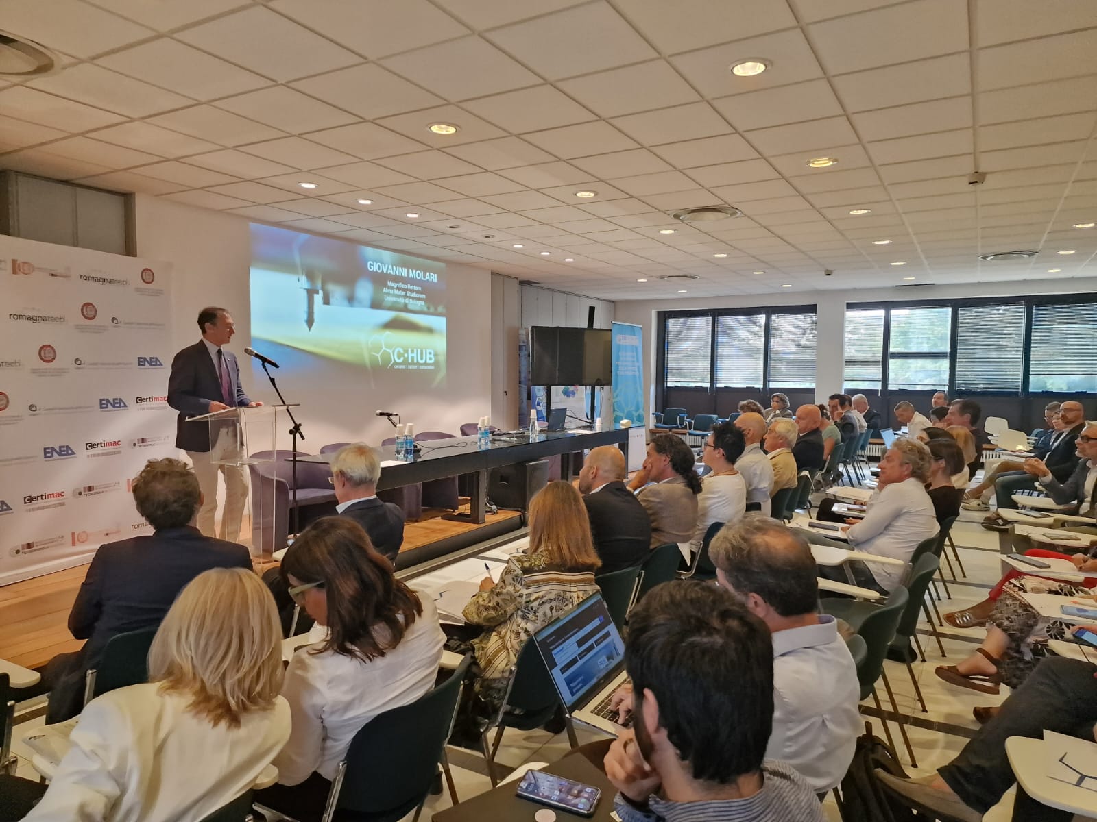 Assessore Regione Emilia-Romagna Vincenzo Colla: “Oggi è il coronamento di un lavoro che vede insieme istituzioni, università e imprese della Romagna faentina. La scelta di celebrare l’avvio del percorso del C-Hub dentro il tecnopolo dà bene l’idea di un lavoro di sviluppo che prevede collaborazioni con enti di ricerca come CNR ed Enea. C sta per Compositi e per Ceramica, ma anche per Competenze, Condivisione, Coinvolgimento; sta per Calcolo, perché dietro a questi sviluppi ci sono i sistemi digitali, ma anche per Circolare, perché quando parliamo di materiali parliamo di economia circolare. Quello dei materiali è un settore strategico abilitante trasversale a tutte le filiere che abbiamo inserito nella nuova Strategia di specializzazione intelligente regionale. Per questo consideriamo il progetto non solo importante, visto anche il coinvolgimento di aziende di eccellenza come Bucci Composites, Alpha Tauri, Curti e Blacks, ma anche strutturale e la Regione vuole sostenerlo per dargli continuità e stabilità, proseguendo così a rafforzare la rete dell’alta tecnologia, sempre al fine di creare lavoro buono”.