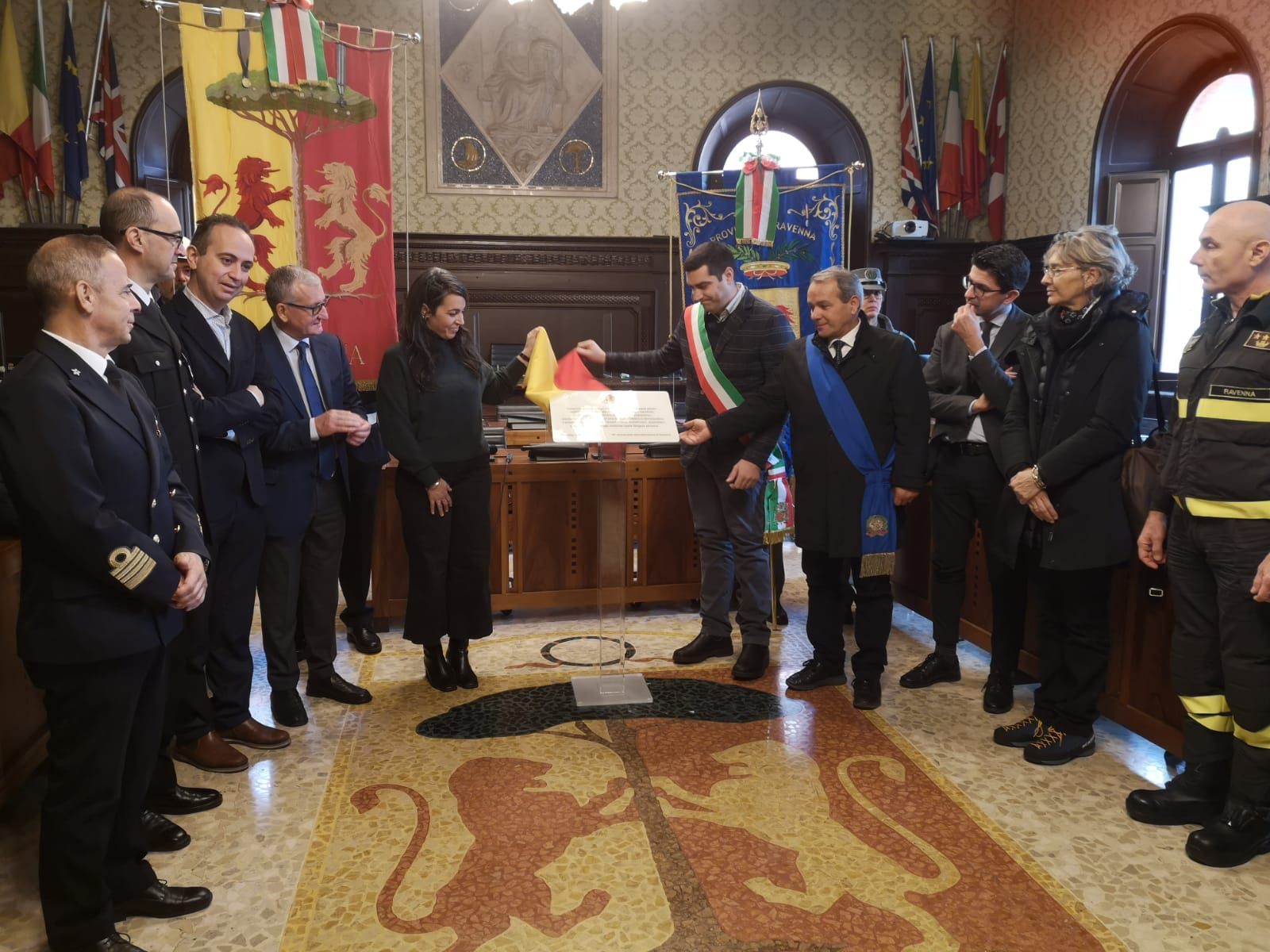 Si è svolta questa mattina la cerimonia di deposizione di corone e omaggio alla lapide in memoria dei caduti della Seconda guerra mondiale alla presenza del picchetto d’onore militare. Alle 11.30 nella sala pre consiliare della Residenza municipale, in piazza del Popolo n. 1, è stata scoperta una targa commemorativa dedicata ai soldati alleati venuti da Paesi lontani per liberare Ravenna con gli interventi del sindaco Michele de Pascale e di Michele Marchi, professore di storia contemporanea – Università di Bologna, dipartimento di Beni culturali, il quale nel suo intervento si è soffermato in particolare sulla virtuosa sinergia tra le forze resistenziali locali e gli eserciti alleati, una pagina forse non sufficientemente conosciuta e sottolineata nel più ampio contesto della resistenza italiana al nazifascismo.