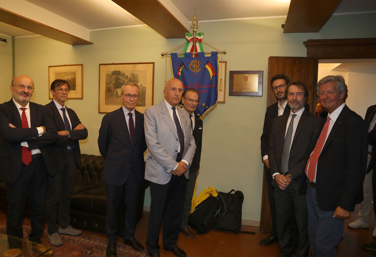 Alla cerimonia, accanto al figlio Adolfo De Stefani Cosentino e al presidente del Circolo Beppe Rossi, sono intervenute numerose autorità cittadine: il presidente dell’ABI Antonio Patuelli, il sindaco Alessandro Barattoni, il prefetto Raffaele Ricciardi e il presidente della Camera di Commercio Giorgio Guberti.