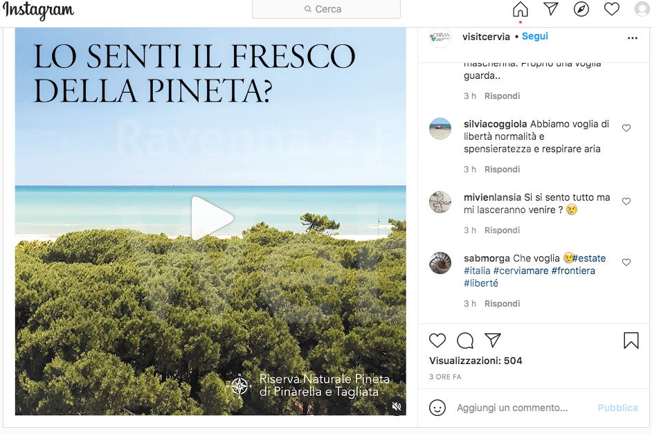 Questo quanto rappresentato dalle prime immagini della campagna, che proseguirà in varie fasi, dall’attesa all’avvio di stagione. Questa prima parte scintillante e fortemente evocativa, vuole essere un piccolo assaggio di quanto si possa godere, pur trovandosi altrove, in un’esperienza di soggiorno a Cervia: una boccata d’aria fresca, anche se ancora un po’ stretti nella morsa dei divieti Covid. A questa prima fase ne seguiranno una seconda e una terza, che dipenderanno nei tempi anche dalle eventuali restrizioni e dai nuovi DPCM. L’obiettivo è infatti quello di essere sempre attuali e contestuali al periodo. Oltre a questa campagna che si svilupperà sui social con grafiche e videostudiatiper diversi target di pubblico, verrà sviluppata con lo stesso claim una campagna di affissioni, anche sulla città di Milano. Accanto a questa prima campagna sono inoltre già state programmate uscite su quotidiani e TV nazionali.