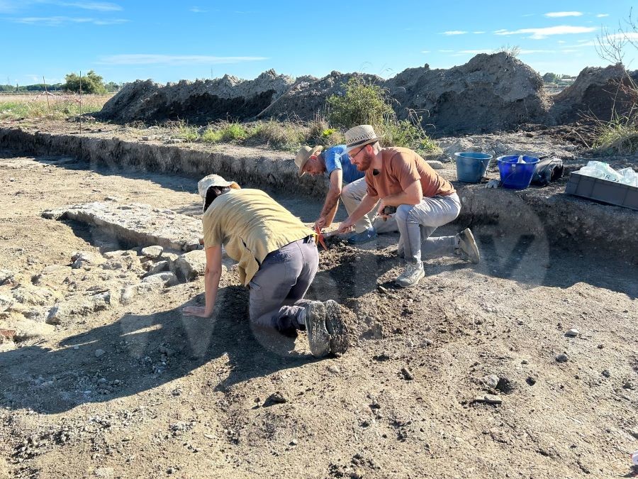 L’indagine di scavo del 2023 si è concentrata nell’area del Prato della Rosa, al centro delle saline, area in cui si riteneva potesse trovarsi l’antica Ficocle. Grazie a una serie di indagini esplorative sono emerse le strutture di un grande edificio pilastrato e numerose sepolture