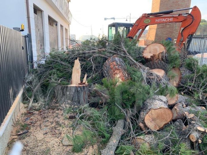 Reazioni indignate di centinaia di cittadini all’abbattimento, avvenuto ieri, dell’ultimo pino domestico presente sulla riva destra della parte terminale del Porto Canale di Cervia.