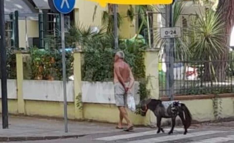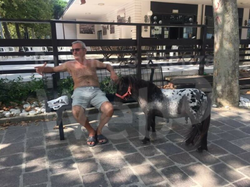 Capita a Cervia, dove un turista lombardo gira con il suo pony, tra il lungomare e la spiaggia.