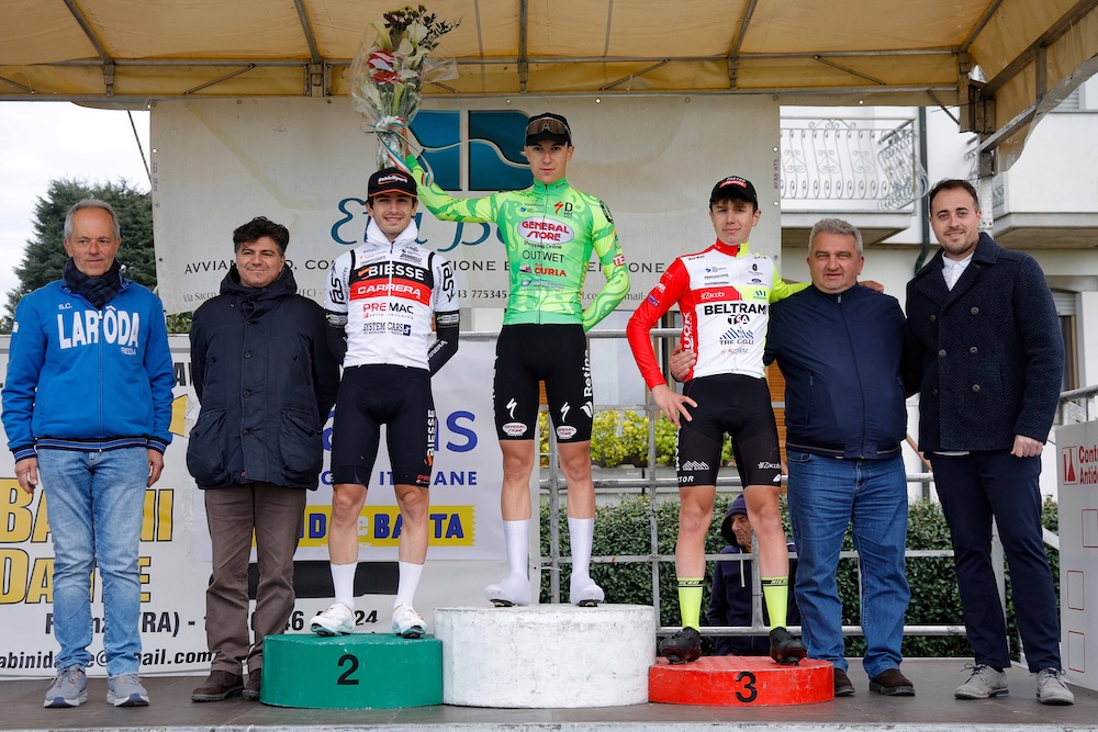 Al loro inseguimento si sganciano William Harding (Zappi Racing Team), Matteo Regnanti (Team Hopplà) e Dennis Lock (General Store – Essegibi – F.lli Curia), che arrivano fino a 30″ di ritardo, ma non c’è nulla da fare. Se la giocano allo sprint, con pieno merito, i tre battistrada: Bortoluzzi ha la meglio su dati dopo un lungo testa a testa negli ultimi 200 metri, mentre Anastasia, al primo anno da U23, completa il podio. Dietro di loro, Lock regola gli immediati inseguitori per il quarto posto. Zurlo, Manenti e Baseggio anticipano nel finale il gruppo, mentre Kevin Pezzo Rosola con lo sprint del primo gruppo completa la top ten.