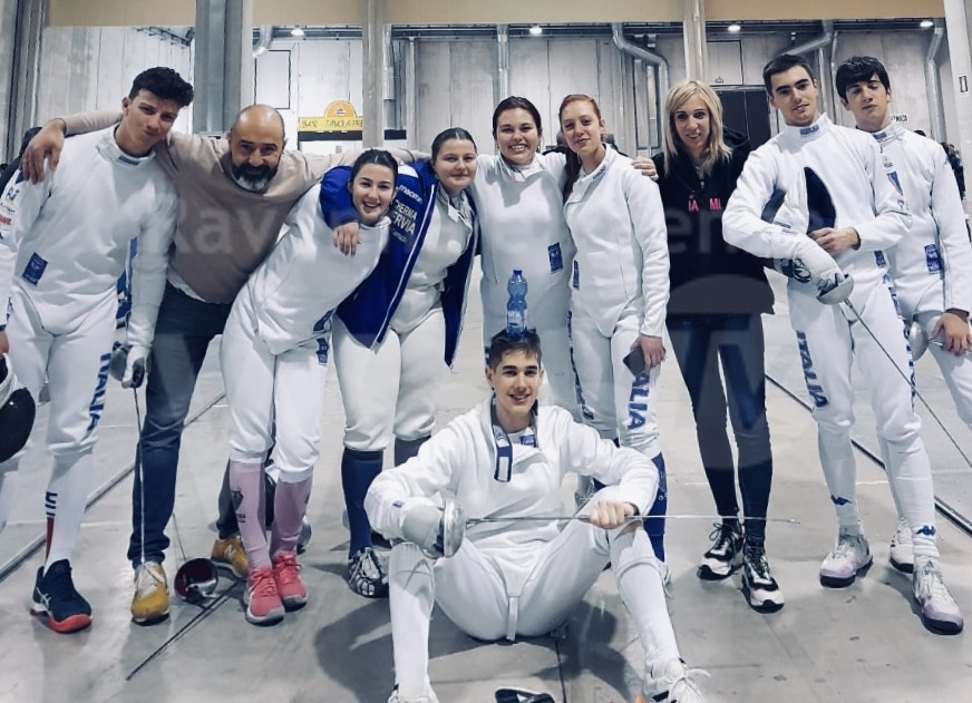 Applausi per la squadra composta da Beatrice Fava, Matteo Galassi, Matteo Rossi e da Giada Russo, classificatasi QUINTA su ben 73 squadre italiane “U23” la nostra tra le più giovani dopo aver disputato un ottimo torneo. Nel primo turno è arrivata la vittoria contro il Pentamodena per 40-25 poi i successi con la Scherma Cariplo Piccolo Teatro Milano per 40-22 e con la Polisportiva Scherma Bergamo per 40-38. Il cammino si è interrotto per il podio contro il Centro Sportivo Aeronautica Militare dove c’è stata una sconfitta per 28-40 che non ha però cancellato l’ottima prestazione del collettivo. Bene per la squadra di atleti ancora più giovani composta da Ginevra Carrozza, Greta Carrozza, Mattia Casadei ed Enrico De Pol dov’è stato un grande allenamento per tutti considerata l’età in un campionato “Under 23” buona la partecipazione di tutti.