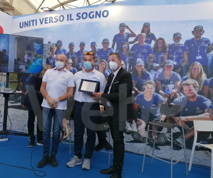 Il premio è stato consegnato dal presidente di Federvela, Francesco Ettorre, a Gianalberto Palmieri e Franco Minotti, che rappresentavano gli “Amici della Vela” a Genova.