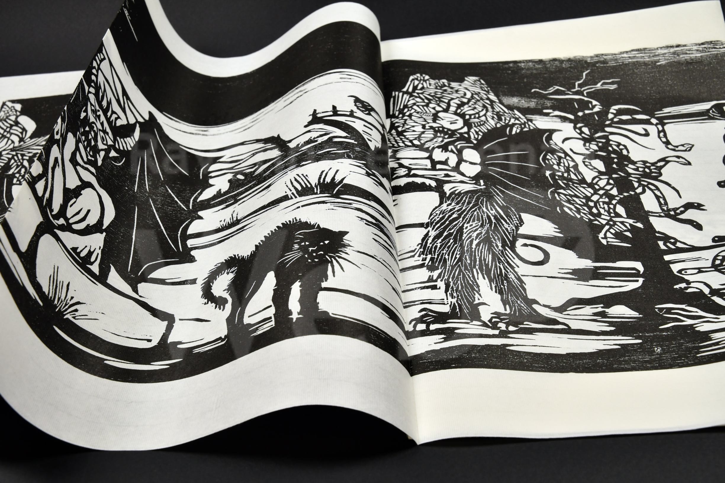 Gianfranco Schialvino, incisore, critico d’arte e amico di Verna da lungo tempo così scrive del progetto: «Gianni Verna, peintre graveur, ha illustrato il brivido di quando davanti a qualcosa di spaventoso ci copriamo gli occhi con le mani, divaricando le dita quel tanto che basta per sbirciare, e il fascino dell’ombra, del lato oscuro, anche su di lui ha avuto la meglio. Nelle sue tavole tutto si “mostrifica”, tutto si distorce alla luce delle fiamme sulfuree: i diavoli, i dannati, i guardiani dei cerchi infernali, che incide nella forma e nel sostrato. L’Inferno orizzontale ripiegato a Leporello, stampato in un nero vellutato, ossidato, opaco fino a toccare la profondità assoluta, rappresenta lo scenario più congeniale per ospitare i demoni, i mostri e ogni sorta di creature bizzarre. Qui, nel regno dell’oltretomba possono finalmente uscire allo scoperto e tartassare le anime dei morti e spaventare i vivi, che vi fanno visita».