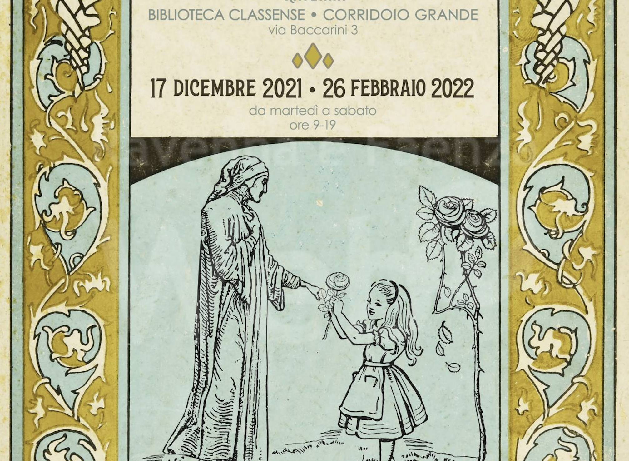 Venerdì 17 dicembre alle 18.30 apre in biblioteca Classense la mostra Il cammino dell’eroe. Dante, Alice e altri viaggiatori, dedicata al tema del viaggio, cardine della Divina Commedia e di molti romanzi, fiabe e miti.