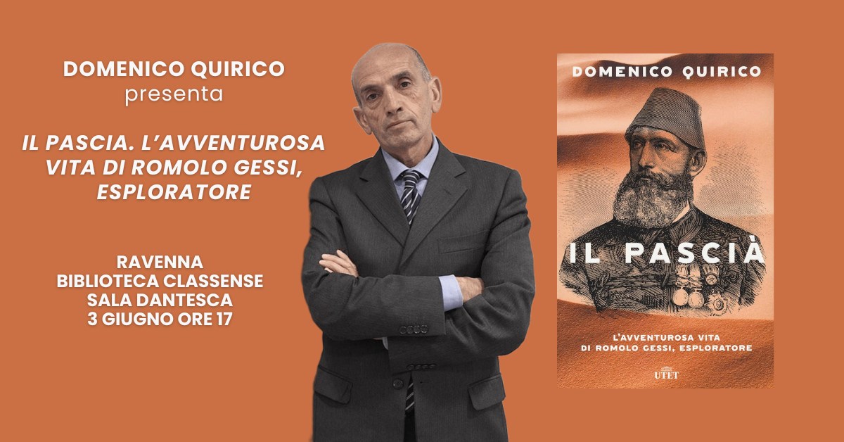 Martedì 3 giugno alle 17, nella sala Dantesca della Biblioteca Classense, Domenico Quirico presenterà Il pascià. L’avventurosa vita di Romolo Gessi, esploratore, biografia del grande viaggiatore di origine ravennate (1831-1881) e protagonista, insieme a Francesco Negri e Pellegrino Matteucci, della mostra Il Genio Vagante. Negri, Gessi e Matteucci: storie di viaggiatori tra ‘600 e ‘800. A dialogare con lui sarà Benedetto Gugliotta, curatore della mostra.