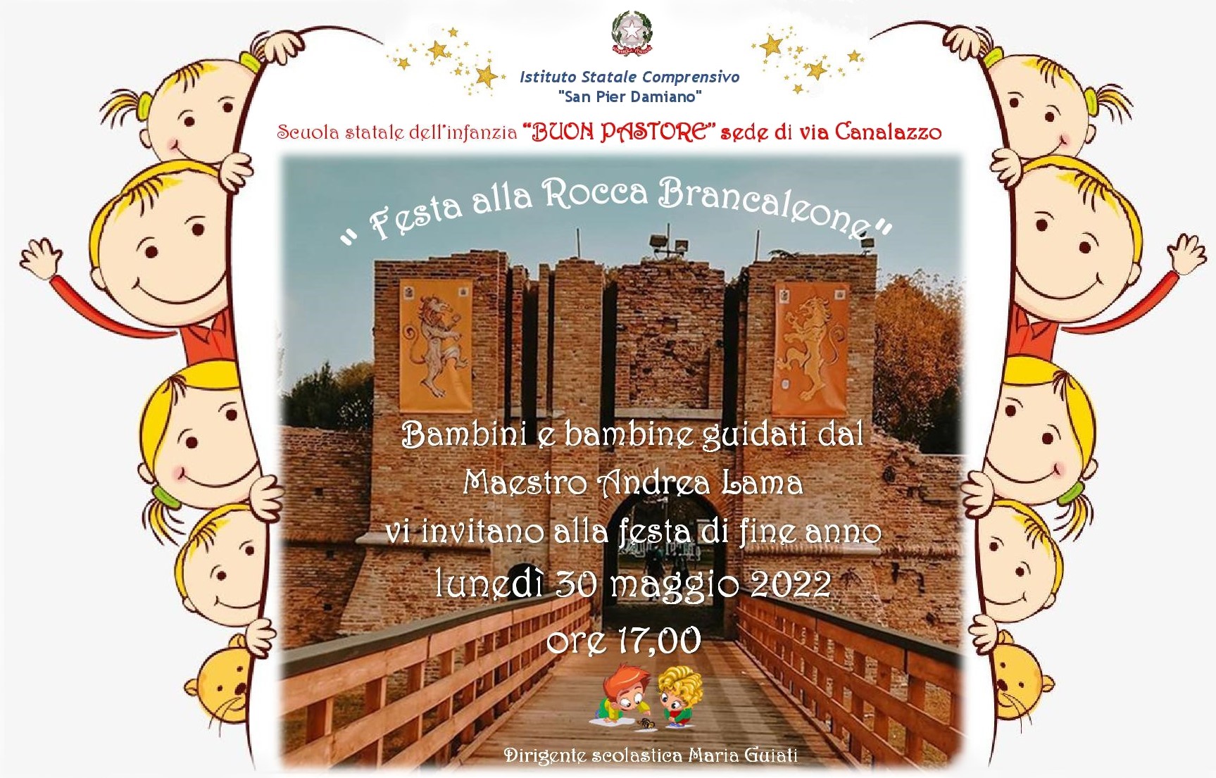 Le maestre ringraziano Andrea Caccia e Jacopo Mutti per l’ospitalità alla Rocca Brancaleone, i genitori e tutto il personale amministrativo dell’Istituto statale San Pier Damiano per la collaborazione alla realizzazione dell’evento.