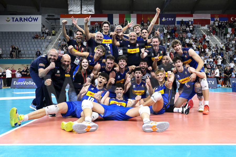 C’è anche una fetta di Consar Rcm Ravenna nella nazionale italiana Under 22 maschile che domenica sera a Tarnow, in Polonia, ha conquistato il titolo continentale di categoria. Il successo europeo, nella prima edizione per questa categoria, porta infatti anche la firma di Francesco Comparoni, uno dei confermati in casa ravennate, e di Alberto Pol, uno dei tanti giovani arrivati alla corte di Bonitta per la prossima annata. L’Italia ha messo in fila le sue avversarie vincendo tutte e cinque le partite: nel girone di qualificazione ha superato nell’ordine la Turchia per 3-1, il Montenegro per 3-0 e l’Olanda per 3-0. In semifinale ha sconfitto i padroni di casa della Polonia per 3-2 e nella finale di domenica sera ha battuto la Francia per 3-1, confermandosi ai vertici della pallavolo internazionale. L’anno scorso questo gruppo vinse infatti i Mondiali Under 21 a Cagliari.