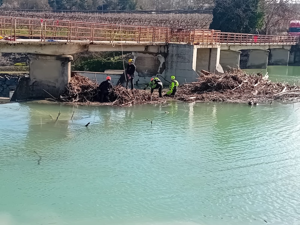 Data la complessità del sito, determinante è stato il supporto del Vigili del Fuoco, in particolare del Nucleo Sommozzatori, il cui intervento ha consentito di rimuovere i tronchi incastrati nei punti più profondi o difficilmente accessibili, dove i mezzi meccanici non avrebbero potuto operare con efficacia.