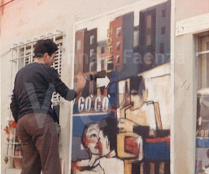 Per chi frequenta le cose dell’arte a Faenza, la figura di Nevio Bedeschi è una presenza costante e sicura da più di 60 anni (nella foto sopra lo vedete all’opera su un muro di Dozza qualche tempo fa).