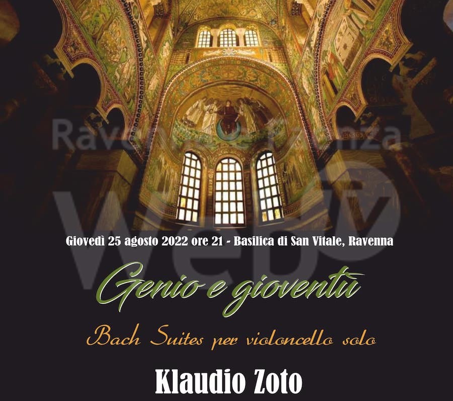 Nella splendida Basilica dì San Vitale a Ravenna, venerdì 25 agosto alle ore 21 si esibirà il violoncellista albanese Klaudio Zoto, 18 anni, uno dei musicisti dell’ultima generazione in ascesa a livello europeo, che eseguirà le Suites 2, 3 e 4 per violoncello solo di Bach.