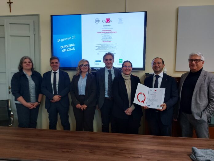 Confcooperative Romagna ha ricevuto la certificazione per la Parità di genere, tecnicamente la Uni PdR 125:2022. Il certificato è stato consegnato ufficialmente ieri, dall’organismo di certificazione CSQA, nella sede ravennate dell’Associazione alla fine del seminario di approfondimento “Parità di genere: driver di sviluppo dell’impresa” dedicato alle cooperative associate all’Unione territoriale.