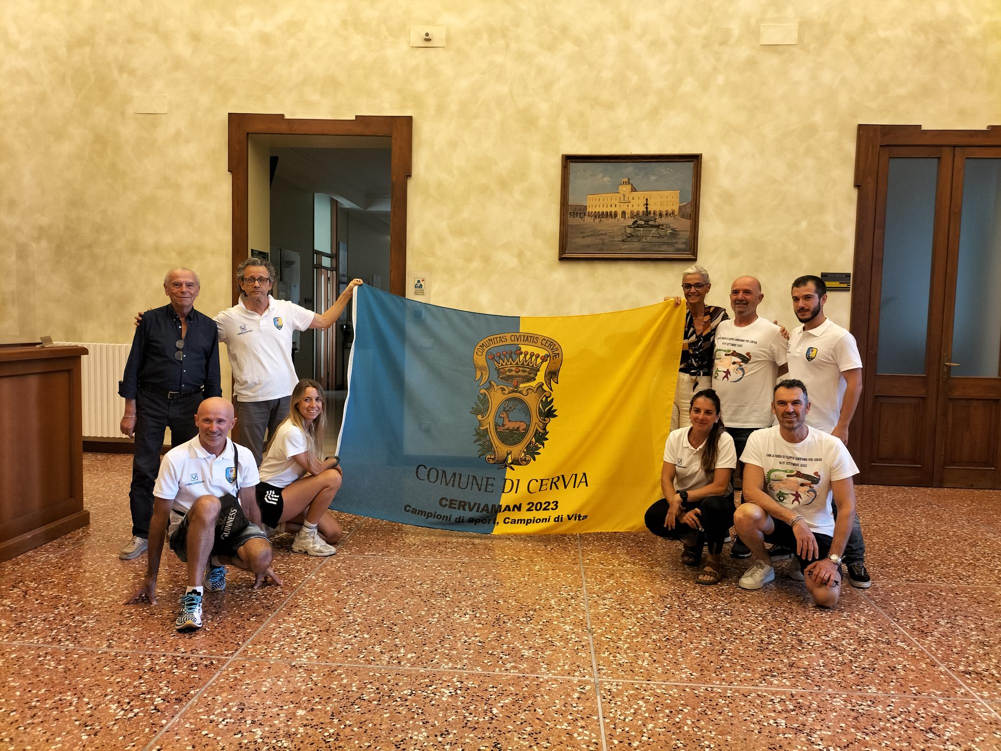 Lo stendardo è stato personalizzato con la scritta: “Cerviaman. Campioni di sport, campioni di vita”, in riconoscimento della vocazione sportiva e sociale del gruppo.