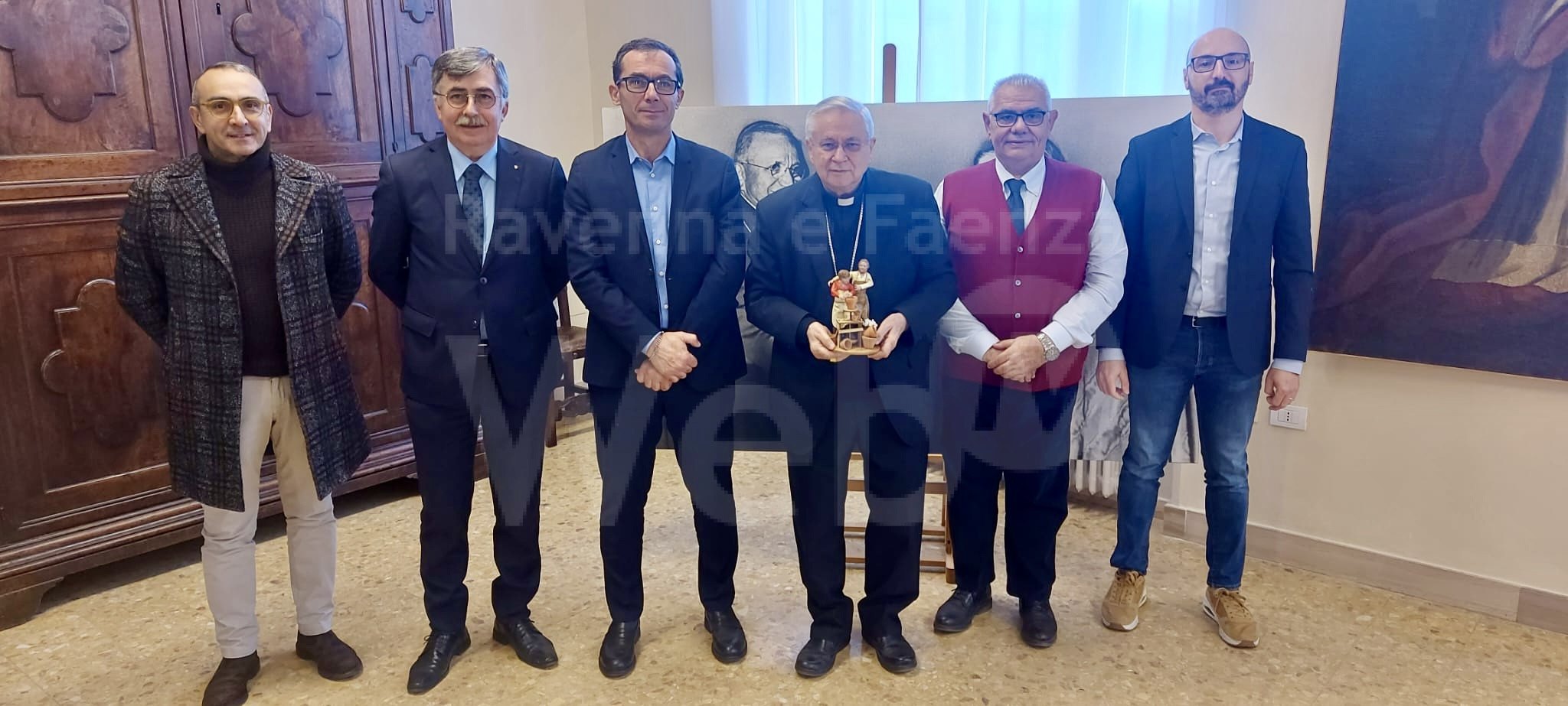 Consegnata da Coldiretti Ravenna e Confartigianato al Vescovo della Diocesi di Faenza-Modigliana Mons. Mario Toso la statuina 2023 del Presepe creata dallo storico presepista Claudio Riso e raffigurante il maestro e l’apprendista.