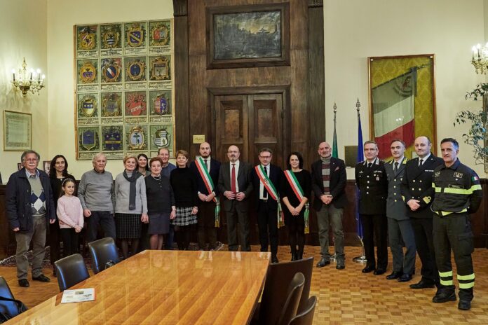 Nel corso della breve ma intensa cerimonia, alla quale hanno partecipato i vertici delle Forze di Polizia e dei Vigili del Fuoco ed i Sindaci dei Comuni di residenza degli insigniti (Ravenna, Riolo Terme e Faenza), il Prefetto Raffaele Ricciardi ha consegnato le Medaglie d’Onore ai familiari di tre cittadini, oggi purtroppo scomparsi, reduci dall’internamento nei lager nazisti: Leopoldo Marini, Carlo Martelli e Remo Minardi.