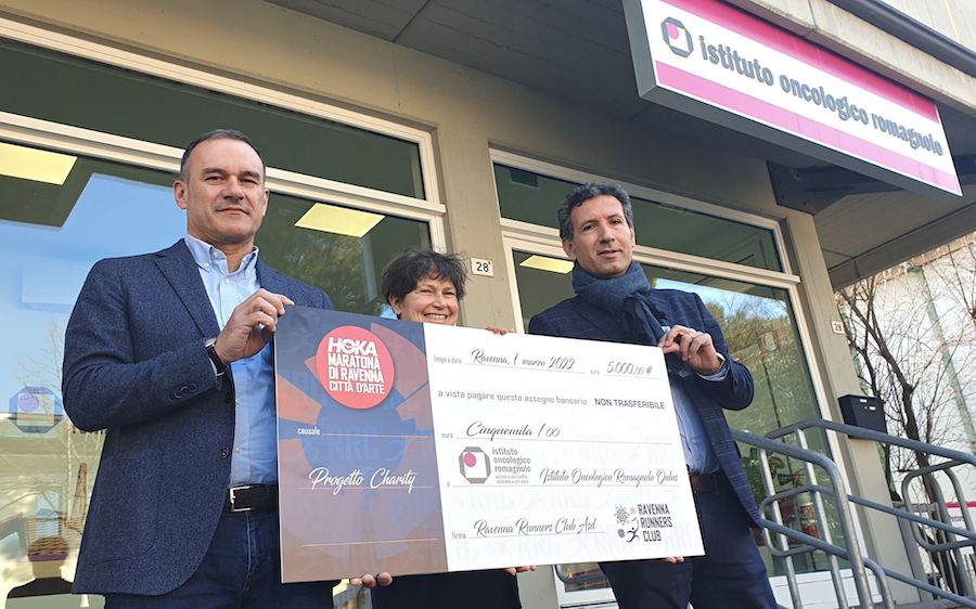 A circa tre mesi di distanza dalla Hoka Maratona di Ravenna Città d’Arte 2021, è stato consegnato allo IOR, Istituto Oncologico Romagnolo, l’assegno firmato da Ravenna Runners Club e legato al progetto attuato nello scorso mese di novembre. Un appuntamento ormai tradizione celebrato quest’anno in leggero ritardo a causa delle limitazioni legate alla pandemia, ma che non ha perso tutto il suo peso specifico e l’importanza. Un gesto ben più che simbolico per sostenere una battaglia sempre attuale anche in un periodo nel quale l’attenzione mediatica si è spostata in prevalenza sulle dinamiche del Covid, tralasciando altre malattie che devono continuare ad essere combattute ogni singolo giorno.