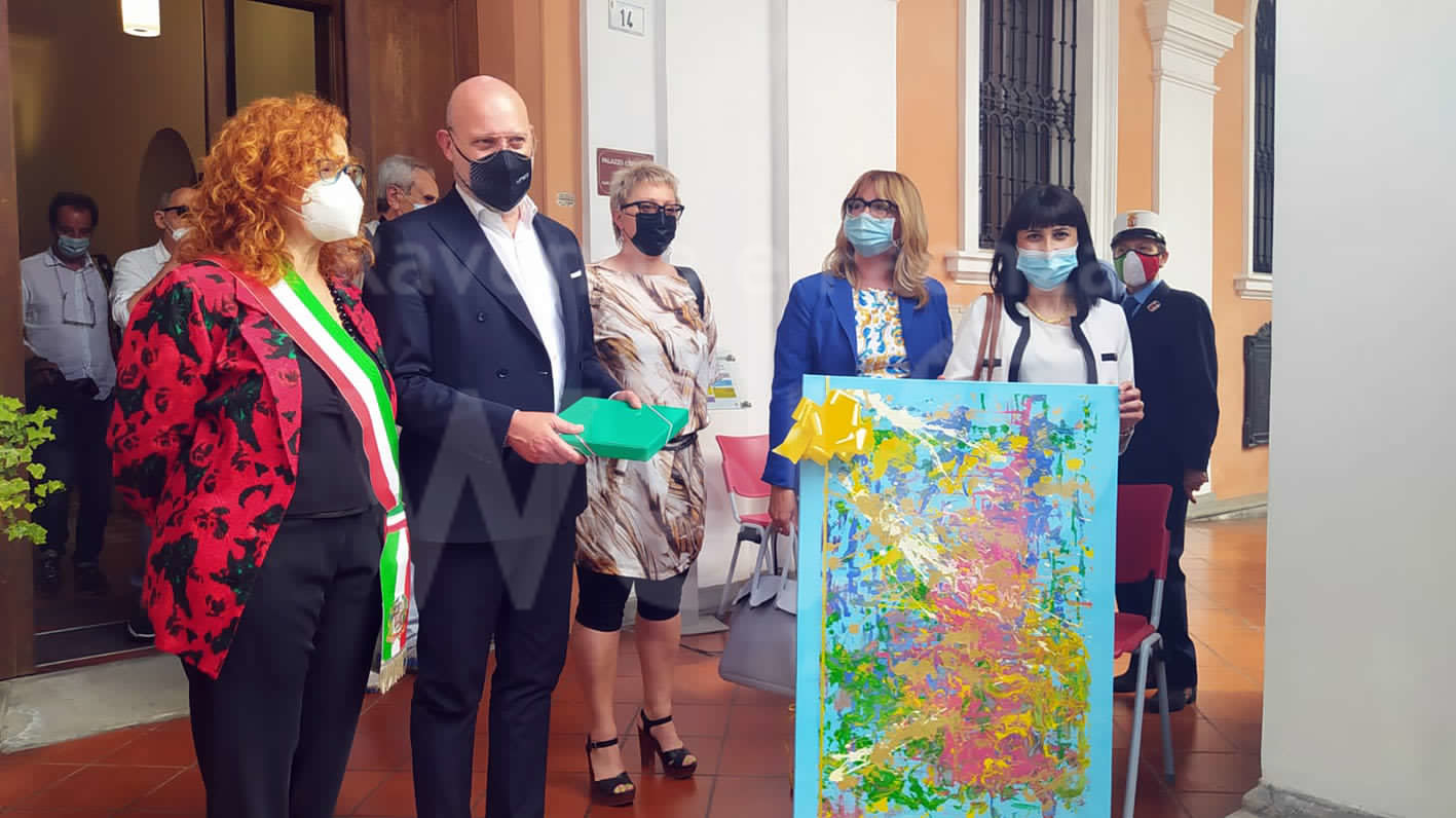 Sabato 5 giugno a Conselice, in occasione dell’inaugurazione del municipio restaurato, la responsabile della casa residenza anziani Jus Pascendi Nadia Samorini ha donato al presidente della Regione Emilia-Romagna Stefano Bonaccini e alla sindaca Paola Pula due quadri realizzati dagli ospiti della struttura.
