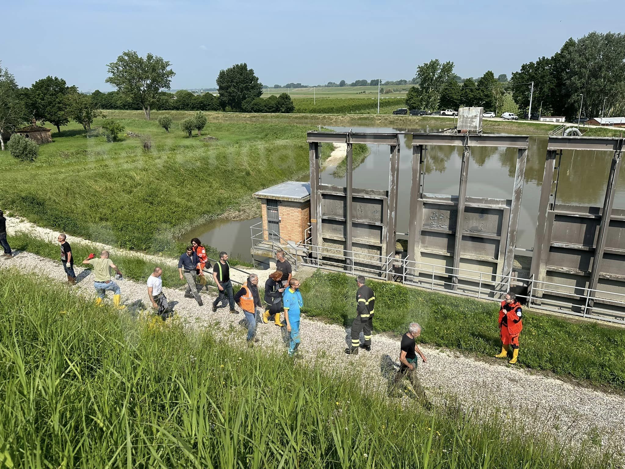 “Si lavora alla realizzazione di una stazione di pompaggio suppletiva per scaricare le acque del Canale Destra Reno nel Santerno. Al lavoro insieme, cittadini della zona, addetti del Consorzio di Bonifica della Romagna occidentale, personale del volontariato della colonna mobile di protezione civile della regione Toscana.
