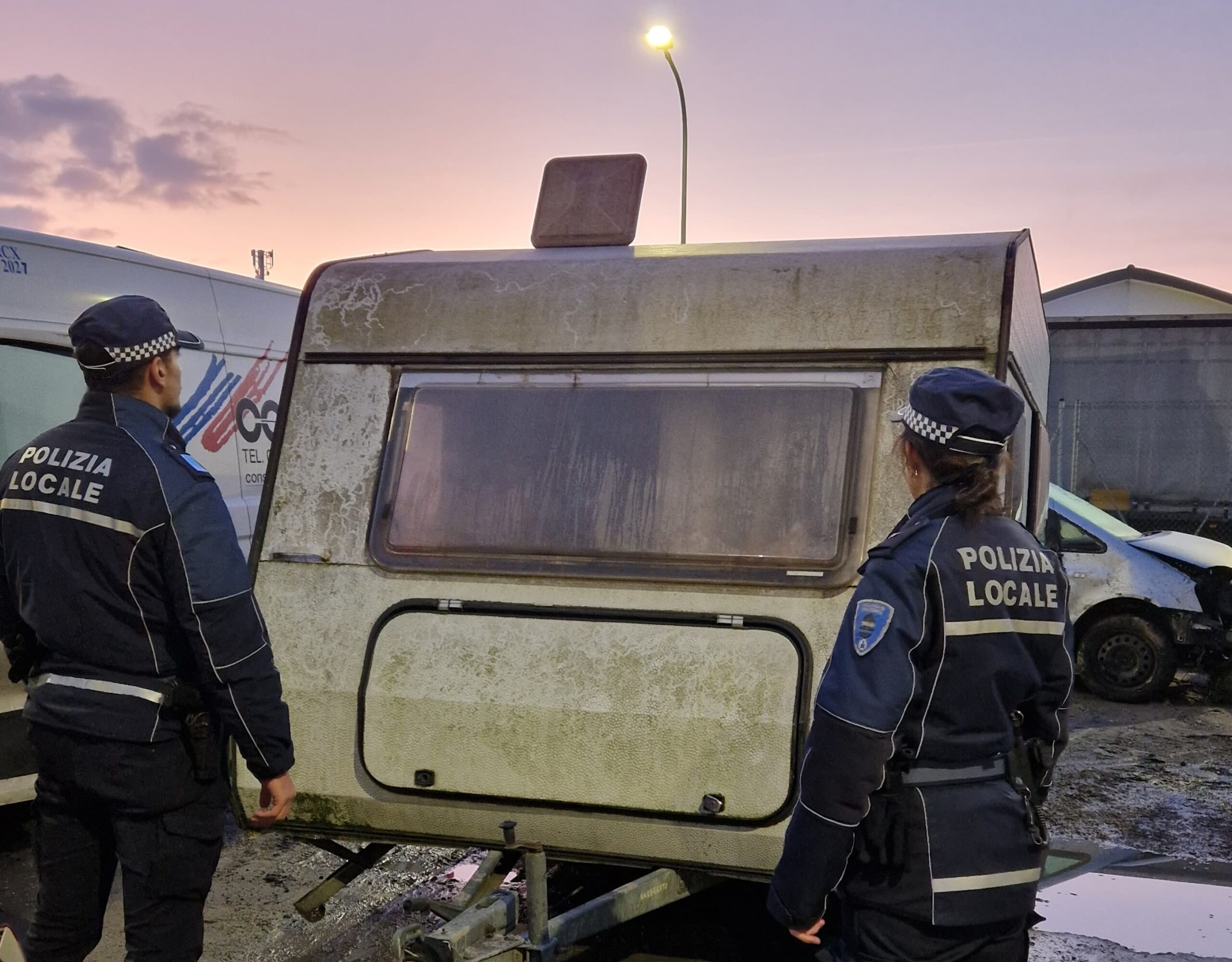 Il controllo ha permesso di accertare la presenza di due persone straniere non in regola con il titolo di soggiorno, accampate all’interno di una roulotte. I due soggetti sono stati accompagnati presso il Comando di Polizia Locale per l’identificazione e l’avvio delle procedure di espulsione. Il veicolo è stato rimosso, sottoposto a sequestro in vista della demolizione e l’area bonificata.