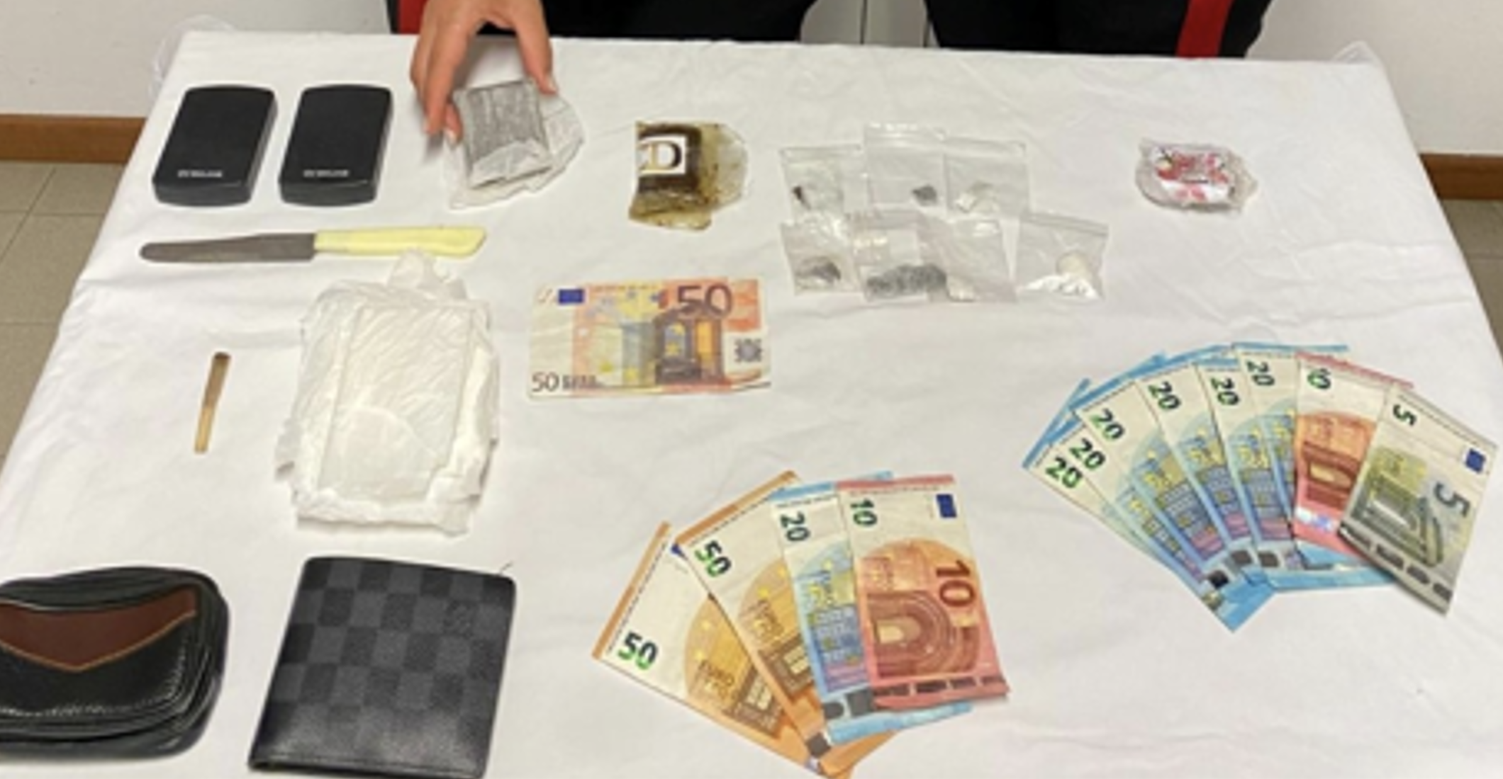 Il 19enne, sottoposto a perquisizione, aveva con sé altri 50 grammi di hashish nascosti nelle scarpe, 135 euro, un coltello da cucina, materiale per il confezionamento e un bilancino di precisione. A casa sua i Carabinieri hanno rinvenuto ulteriori 40 grammi di droga, uno spinello già pronto e un secondo bilancino.