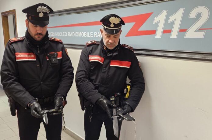 Durante uno dei controlli, effettuati in un’area commerciale del territorio ravennate, i militari sono intervenuti a seguito di una segnalazione riguardante un uomo che si aggirava con atteggiamento sospetto. Gli uomini della Sezione Radiomobile hanno identificato il soggetto, un cittadino romeno di 42 anni, che nascondeva due coltelli nel retro dei pantaloni.