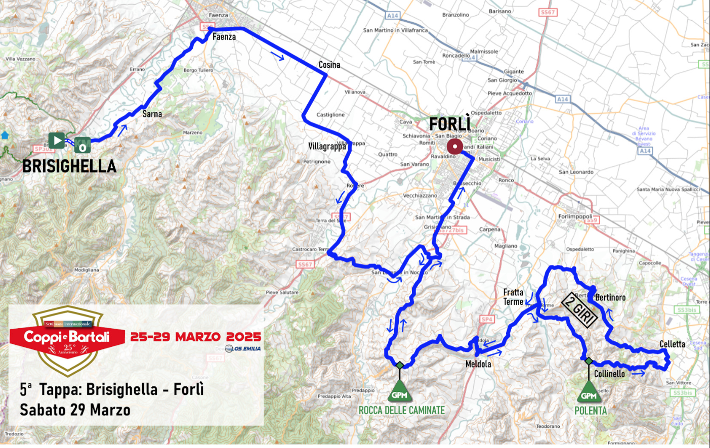 La quinta e ultima tappa, in programma sabato 29 marzo, partirà dal centro di Brisighella alle 12.40 e si concluderà a Forlì.