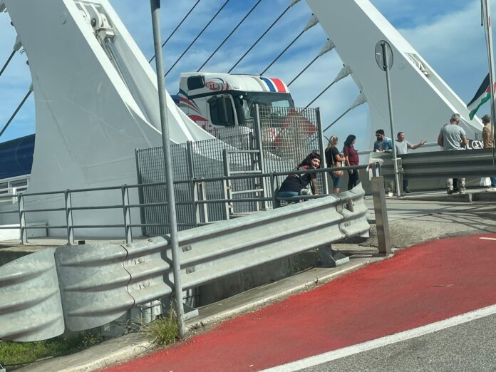 Ponte mobile bloccatonella mattinata dalla manifestazione per la Palestina. I manifestanti si sono sdraiati e seduti per terra, sull’infrastruttura, al grido di “Free free Palestine”. L’occupazione è durata pochi minuti, ma ha portato al blocco del traffico lungo l’asse viale Trieste-Via Mattei, creando disagi.