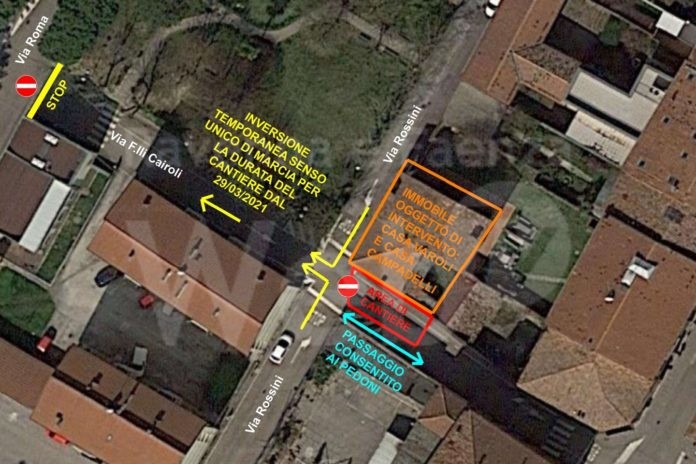 Inoltre, i veicoli provenienti da via Rossini saranno indirizzati verso via Roma, invertendo il senso unico di marcia di via Cairoli nel tratto tra via Rossini e via Roma (prospiciente l’area verde).