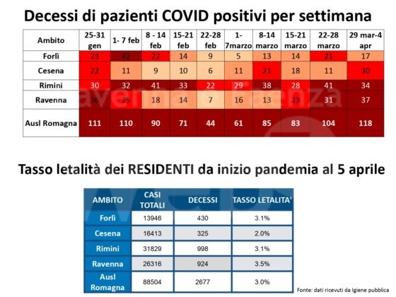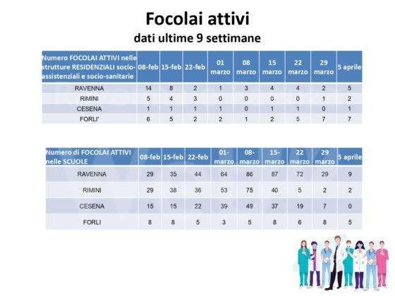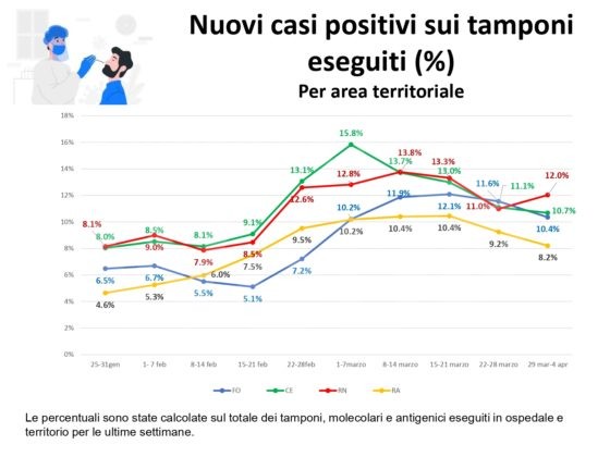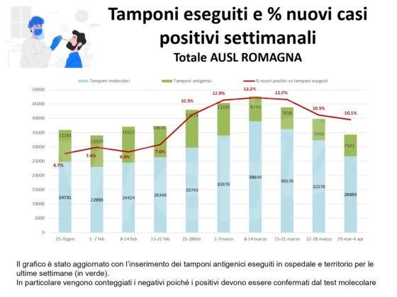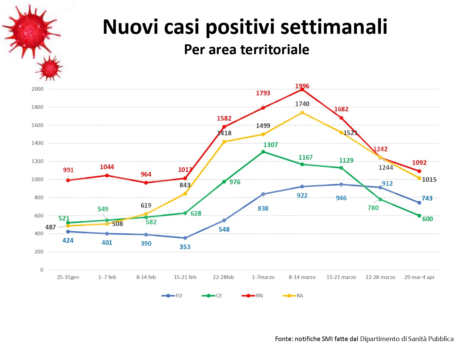 Al fine di fornire un aggiornamento rispetto all’evoluzione del quadro epidemiologico dell’infezione da Covid 19 nel territorio romagnolo, su un arco temporale più significativo rispetto alla situazione di una singola giornata, si riportano, in allegato, alcuni dati relativi alla settimana dal 29 marzo al 4 aprile (precisando che si tratta dei casi di residenti diagnosticati sul territorio romagnolo).