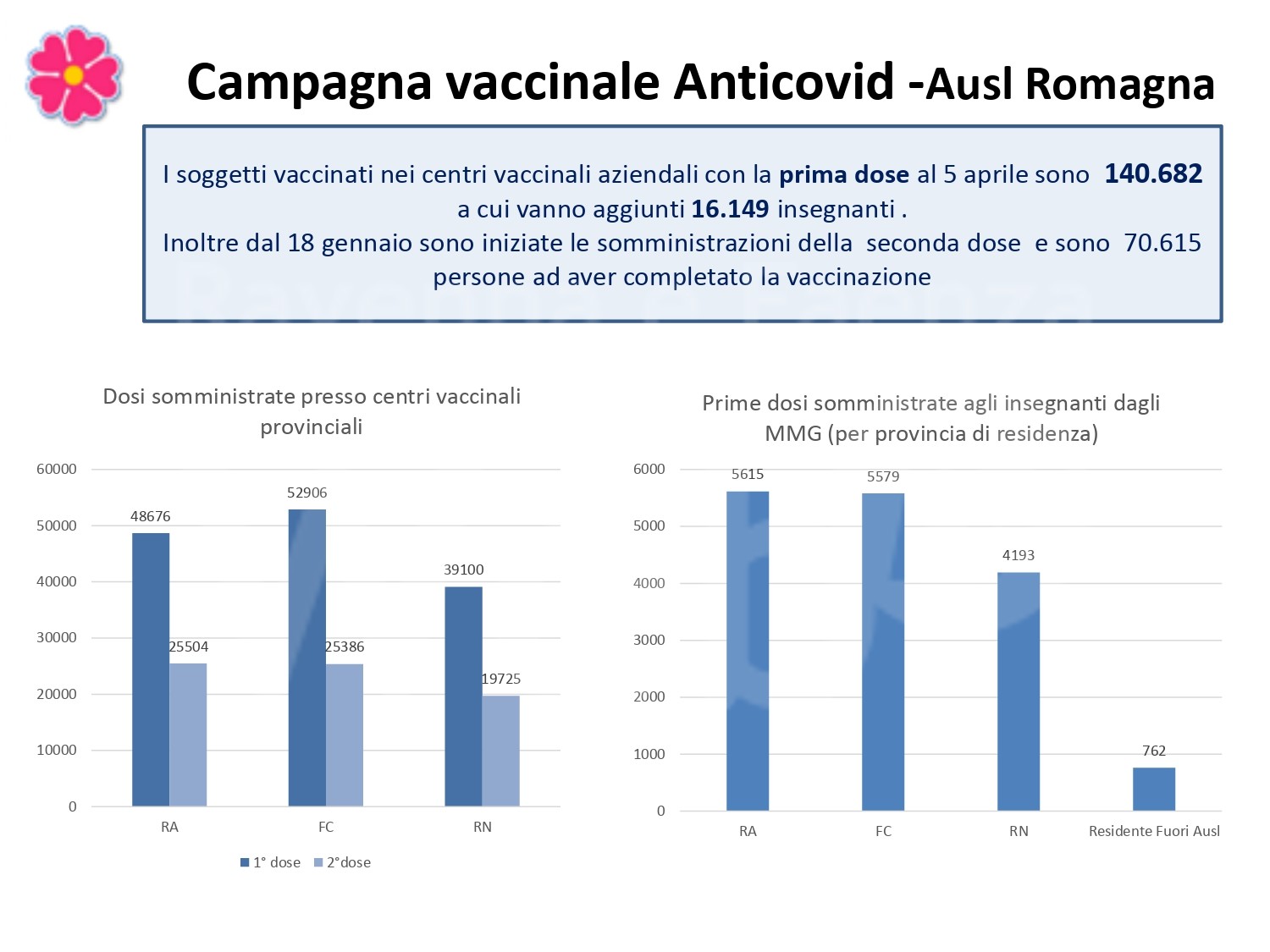“Anche questa settimana , commenta Mattia Altini, direttore sanitario di Ausl Romagna, la circolazione del virus si conferma in calo. Un dato che si riverbera, anche se in maniera comprensibilmente più lenta sull’occupazione dei posti letto anche nelle terapie intensive. Siamo quindi in una situazione complessiva relativamente più “tranquilla”, anche se in un quadro in cui non si deve mai abbassare la guardia. Prosegue nel contempo la campagna vaccinale e l’accordo siglato in queste ore con i medici di medicina generale, ci consentirà di accelerare con le somministrazioni dei pazienti al domicilio e con i loro cargive e conviventi. Si spera che nelle prossime settimane l’approvvigionamento dei vaccini possa ulteriormente incrementare per permetterci di proseguire celermente anche con la fascia di popolazione dai 70 ai 74 anni di età che a partire dal 12 aprile comincerà a prenotarsi”.