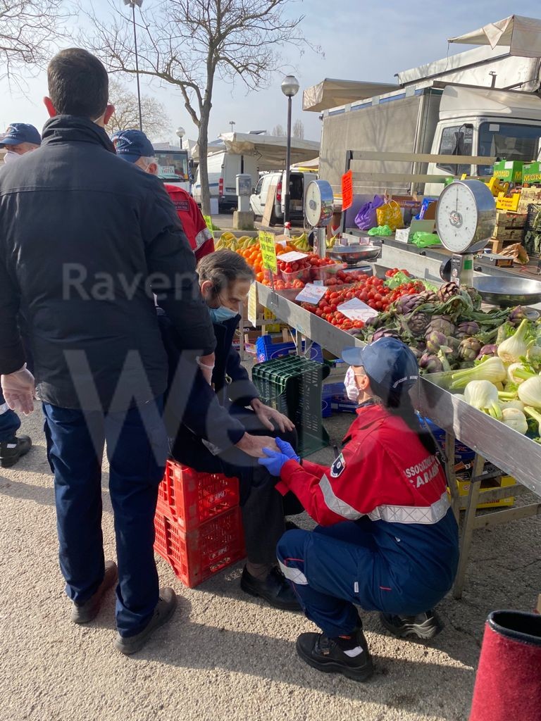 Operativamente, parecchi volontari A.N.C., a turno, con passione, gratuitamente e con le dovute cautele e utilizzando i dispositivi di protezione individuali, coordinati dal Comando Corpo Polizia Locale, hanno costantemente svolto servizi anti Covid-19 al mercato di Ravenna, via Sighinolfi/piazza Zaccagnini, permettendone l’apertura anche durante i periodi di “ZONA ROSSA”, predisponendo accessi regolamentati e scaglionati all’area di vendita in differenti percorsi d’accesso e di uscita, garantendo il distanziamento dei clienti in attesa di entrata e posizionando i cartelli in lingua italiana e inglese per informare la clientela sui corretti comportamenti. In particolare, vengono sempre fatte rispettare le distanze sociali, il divieto di assembramento, il corretto uso delle mascherine e distanziamento, in attuazione del Protocollo regionale degli esercizi di commercio al dettaglio su aree pubbliche e ordinanza Comunale; vengono distribuite mascherine alle persone che ne sono sprovviste e costantemente vengono ascoltate tutte le persone e aiutate quelle in difficoltà o anziane anche portando la loro spesa. Infine, i volontari informano e distribuiscono materiale illustrativo delle norme anti-contagio e verificano che tutti gli esercenti dispongano del gel di sanificazione delle mani.