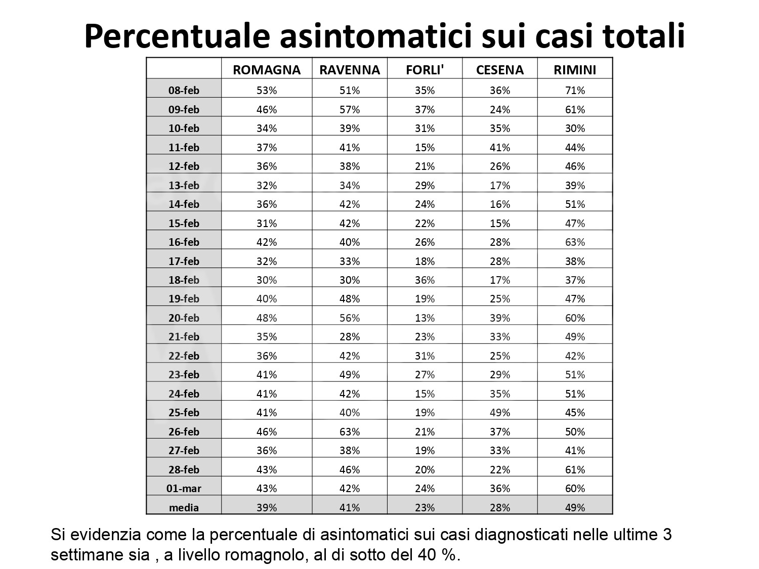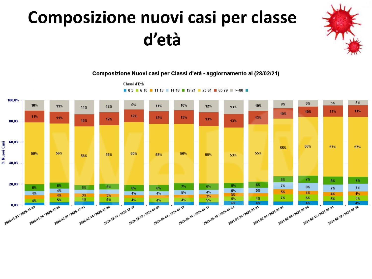 “Come si evince dai grafici contenuti nel bollettino, commenta Mattia Altini, direttore Sanitario Ausl Romagna, i dati dell’ultima settimana di febbraio registrano un ulteriore progressivo aumento del numero dei nuovi casi, iniziato in modo graduale dalla prima settimana di febbraio. Una situazione seria che anche alla rapidità di circolazione e contagiosità ci conferma il ruolo predominante che la variante inglese sta assumendo sul nostro territorio. Dall’analisi delle classi di età si evince che questo aumento è particolare evidente in età scolare, mentre si riducono significativamente gli over 80. Un dato positivo probabilmente per effetto della progressione della campagna vaccinale. Da questo scenario si è giunti alla relazione redatta dall’Azienda e inviata ai sindaci che attraverso l’ordinanza , in vigore da martedì, colloca i territori di Ravenna, Cesena e Rimini ( ad esclusione di Forli) in “fascia arancione scuro con misure più restrittive finalizzate a contrastare e circoscrivere il contagio. Una misura che la settimana precedente era già stata adottata dai comuni di Massa Lombarda, Conselice, Riolo Terme e Bagnara, per l’alto numero di contagi registrati. Ora l’obiettivo e lo sforzo primario è il contenimento della diffusione del virus, non dobbiamo abbassare la guardia. Se l’approvvigionamento dei vaccini sarà, come ci auguriamo, più celere, costante e con numeri di dosi significative, potremo accelerare la macchina organizzativa e procedere celermente alla vaccinazione della popolazione. Adesso a differenza dell’anno scorso abbiamo un’arma contro il virus”.