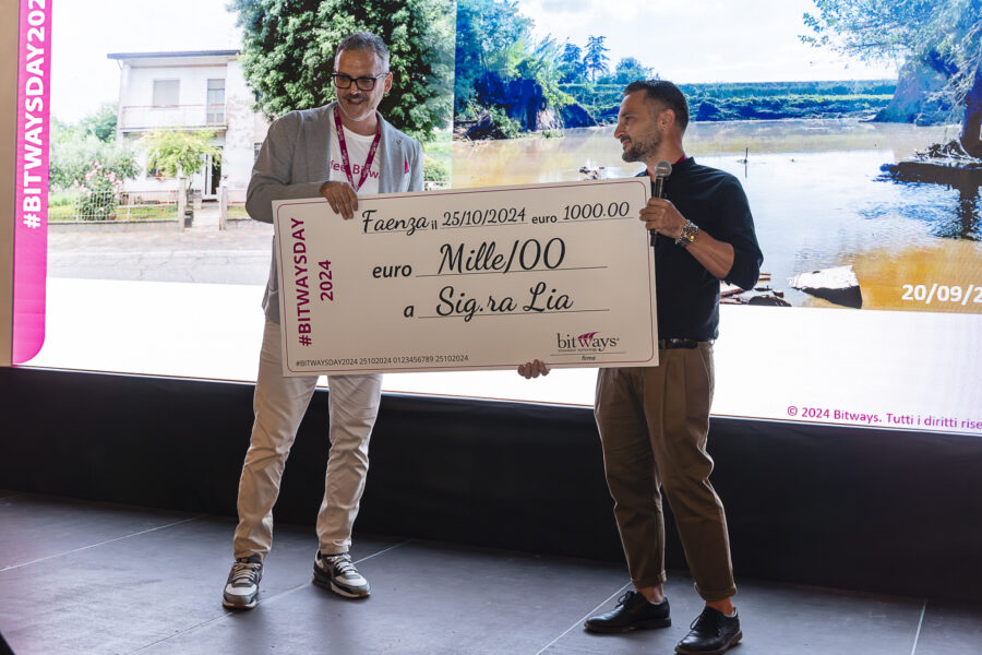 Al di là del successo dell’evento (oltre 150 ospiti, con cui Bitways – attraverso numerosi e prestigiosi relatori – ha condiviso le principali novità sulle tematiche di cui si occupa), i titolari dell’azienda faentina hanno deciso di condividere con i partecipanti un piccolo gesto di solidarietà: una donazione a vantaggio di Attilia Alboni, una anziana signora di Traversara la cui casa è stata letteralmente distrutta dalla recente alluvione.