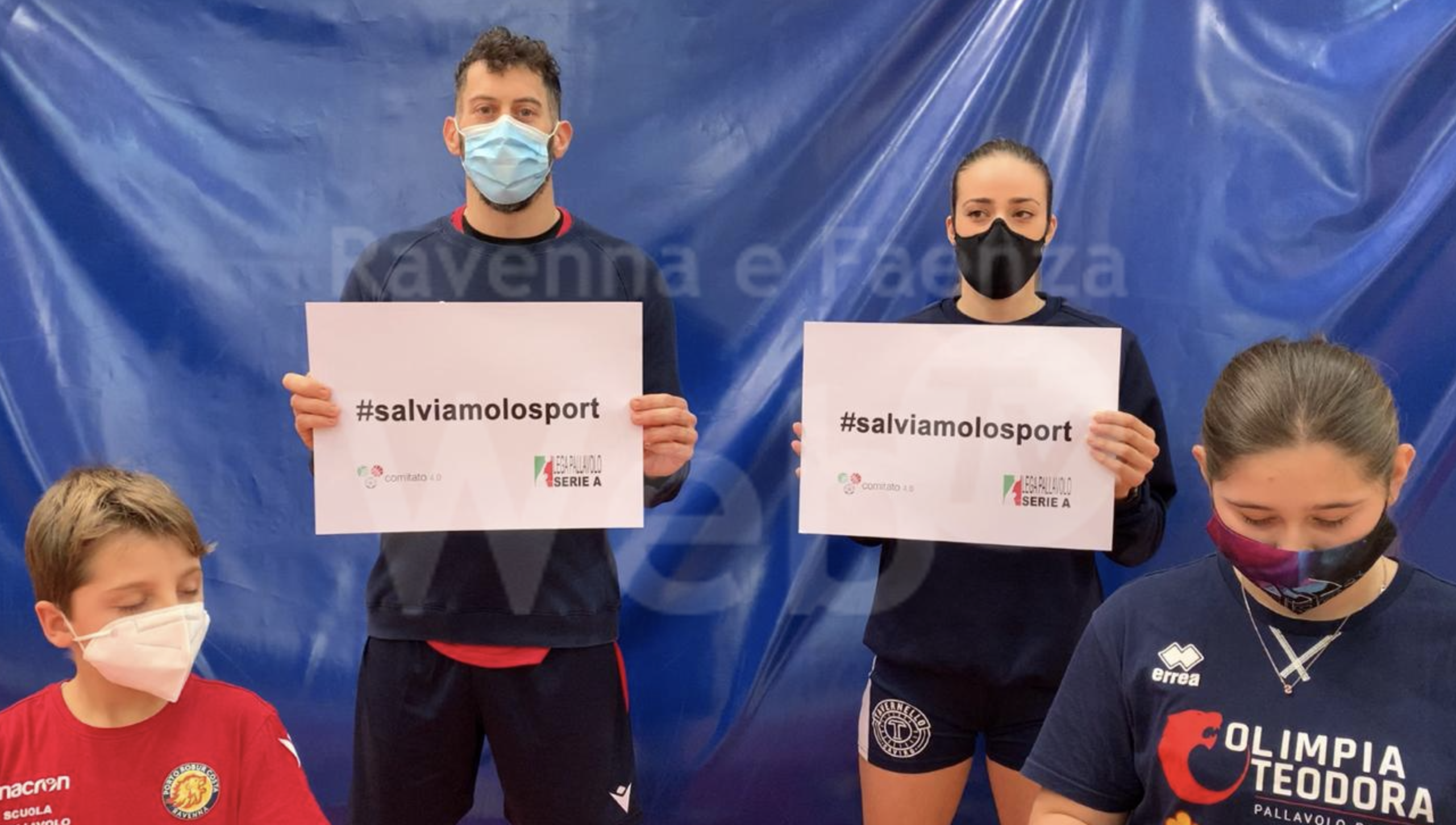 Stefano Mengozzi e Ludovica Guidi, i capitani di Consar Porto Robur Costa 2030 e Conad Olimpia Teodora, un ragazzino e una ragazzina a rappresentare il poderoso vivaio dei due club che assieme raggiungono quasi 400 tra atleti e atlete: insieme a lanciare un appello, attraverso un video promozionale, nell’ambito della campagna #salviamolosport, con cui i 245 club appartenenti alla Lega Pallavolo Serie A e alla Lega Pallavolo Serie A Femminile, alla Lega Pro, alla Lega Basket Serie A, alla Lega Nazionale Pallacanestro lanciano il grido d’allarme e chiedono aiuto, sostegno e provvedimenti a favore dello sport, quello italiano e quello dei territori e dei comuni, nella sua attività prettamente agonistica ma anche e soprattutto nella sua funzione sociale e aggregativa.