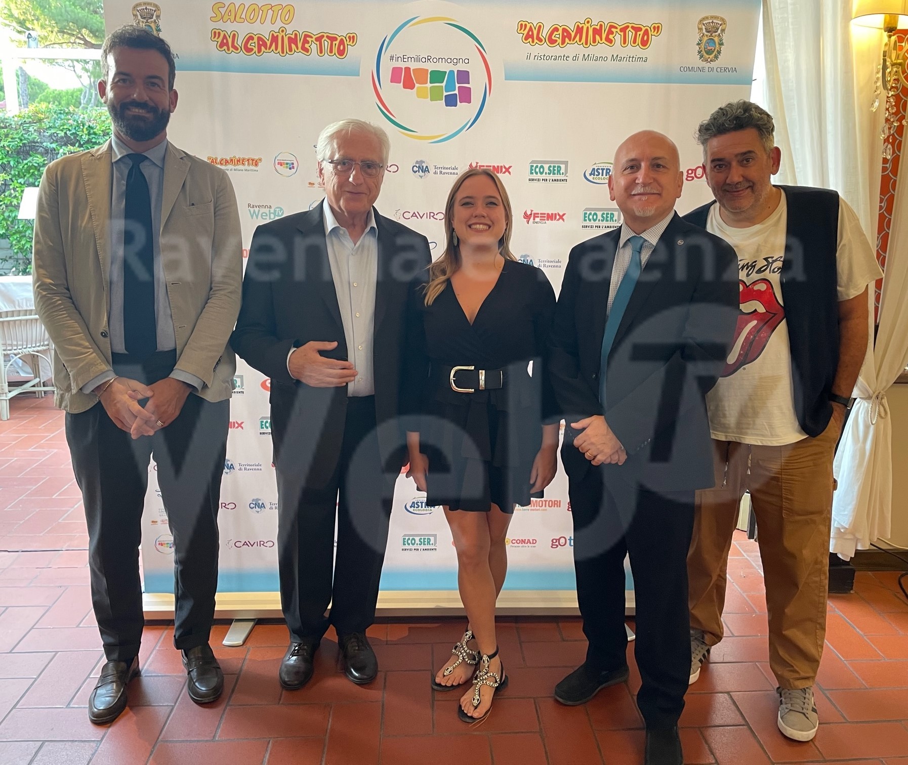 Quinta serata del “Salotto Al Caminetto” storico talk show che si svolge al Ristorante “Al Caminetto” di Milano Marittima. Gli ospiti: Bruno Piraccin, Presidente di Orogel, Berto Barbieri, direttore di Ecoser, e il comico Andrea Vasumi.