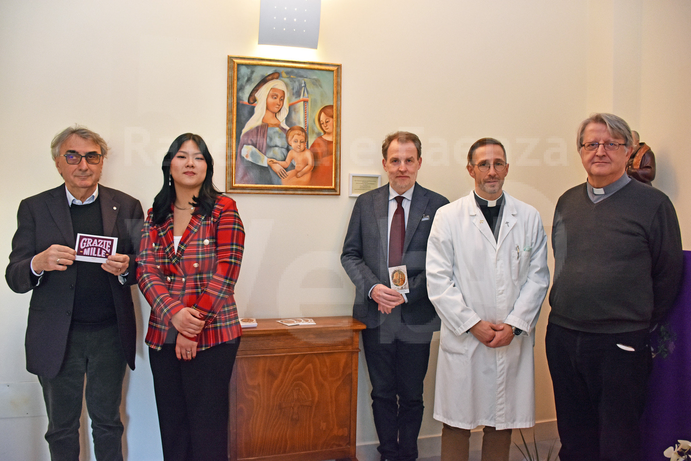 La donazione rappresenta anche un piccolo ma doveroso ricordo di Adalgisa “Cicci” Longo, storica volontaria e anima dello IOR ravennate, tra le prime a promuovere un’iniziativa così simbolica e piena di significato. Alla cerimonia di consegna e benedizione hanno partecipato monsignor Rosino Gabbiadini, rettore della Basilica di Santa Maria Maggiore, Elisa Hu, Mario Pretolani, il Direttore Generale IRST, dott. Lorenzo Maffioli, don Antonio Paganelli, parroco dell’IRST e la prof.ssa Cristina Morigi, collaboratrice del Dirigente Scolastico del Liceo “Nervi-Severini”. Nell’occasione il dott. Pretolani ha voluto riconoscere alla giovane artista un buono acquisti on-line a titolo di ringraziamento.