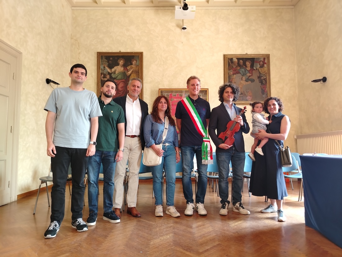 Ad attendere il gruppo in Comune oltre al sindaco c’era il maestro Nicolò Grassi, primo violino dell’Orchestra Corelli di Ravenna e dell’Orchestra Giovanile Italiana, nonché vicepresidente e segretario artistico della Cooperativa LaCorelli che conduce la Scuola comunale di Musica di Castel Bolognese, intitolata proprio a Nicola Utili.