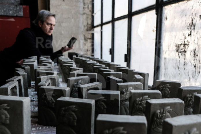 Sarà un pannello di grandi dimensioni, di oltre tre metri di altezza per due metri e quaranta centimetri di base. La mia idea continua Galeotti sta nel creare un Dante Pop, per questo ho creato 700 mattoncini, (come gli anni di celebrazione del sommo poeta) aventi ognuno in forma di bassorilievo la figura di Dante, si procede la cottura, poi all’assemblaggio e montaggio di questo grande pannello, per il quale ci sto lavorando da circa due mesi.