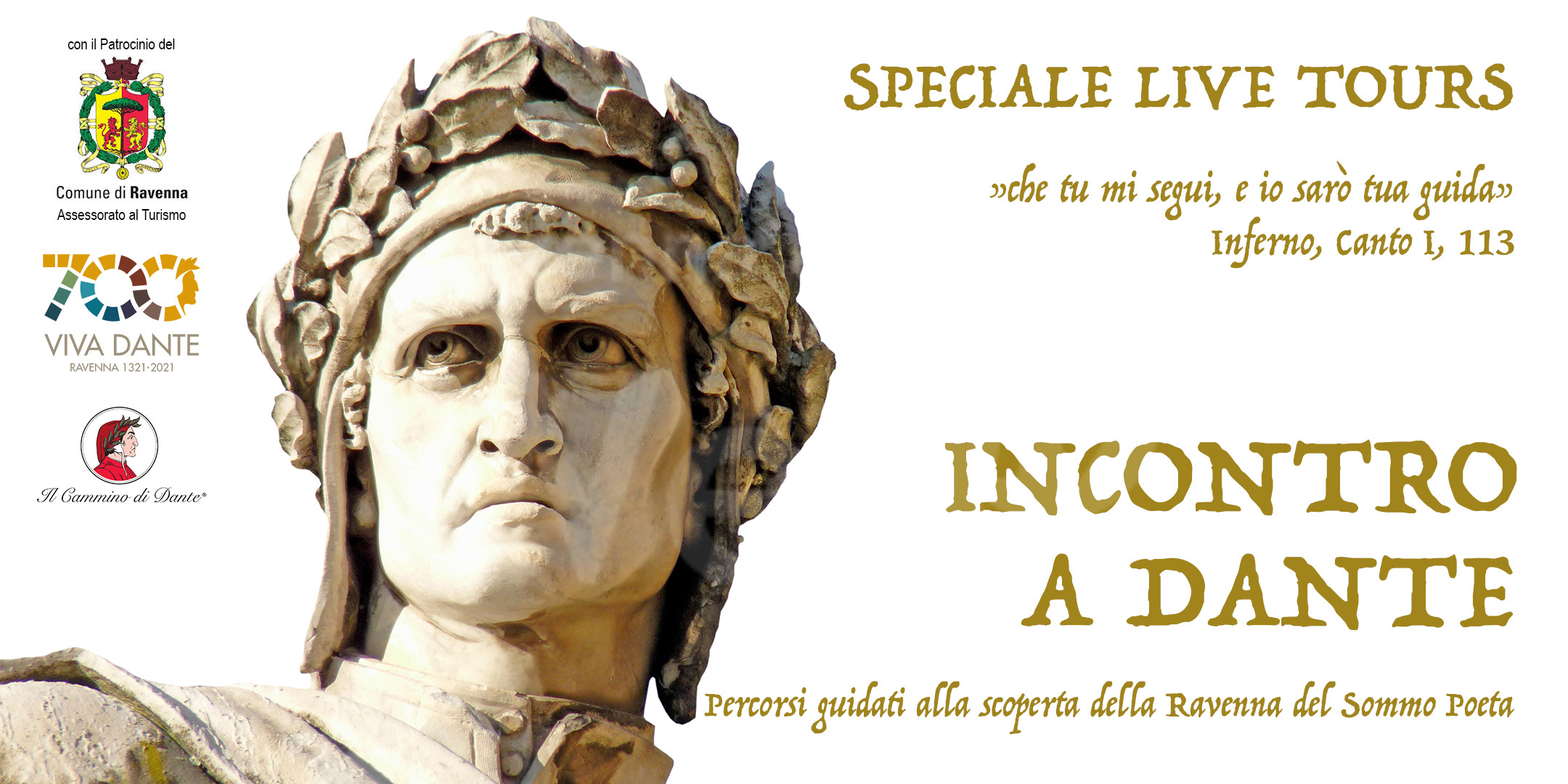 In questo perdurare della zona rossa le guide turistiche de Il Cammino di Dante intendono continuare a celebrare il settecentenario della morte del Sommo Poeta proponendo Dante Live Tours, alcune visite guidate online dal vivo nell’ambito dell’iniziativa Incontro a Dante – Percorsi guidati alla scoperta della Ravenna del Sommo Poeta.
