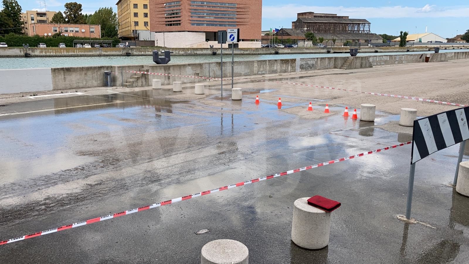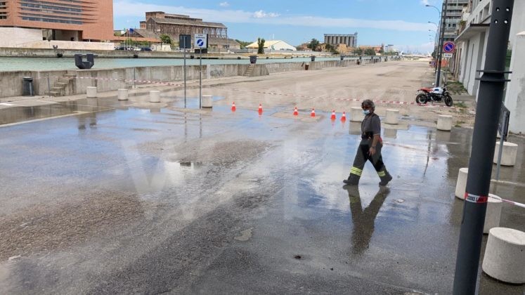 I Vigili del Fuoco sono al lavoro lungo il canale Candiano in Darsena per contenere gli effetti della rottura della tubazione, che ha provocato una fuoriuscita di acqua. L’asfalto, in particolare, sta subendo danni per via della pressione sotterranea esercitata dall’acqua. L’area è per il momento interdetta, e l’acqua ha raggiunto anche i tavoli più esterni del ristorante Soul Club, situato proprio nel pressi del guasto.