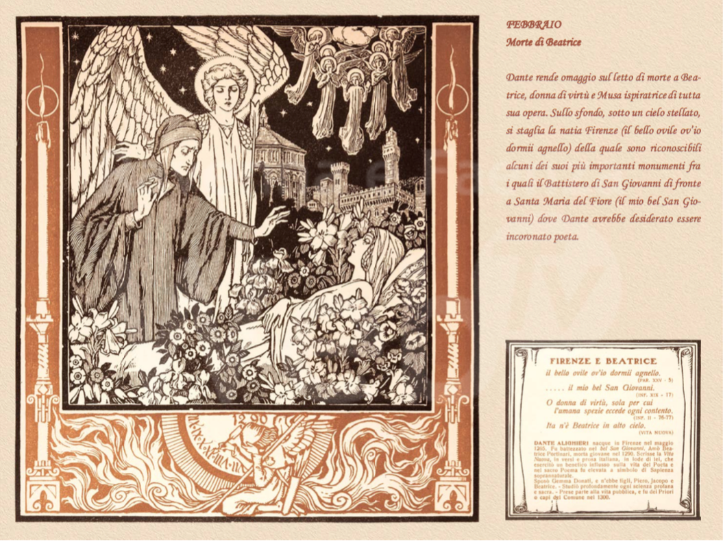 Alcune immagini del calendario rendono omaggio anche a Don Mesini, fondatore nel 1914 del Bollettino Dantesco.