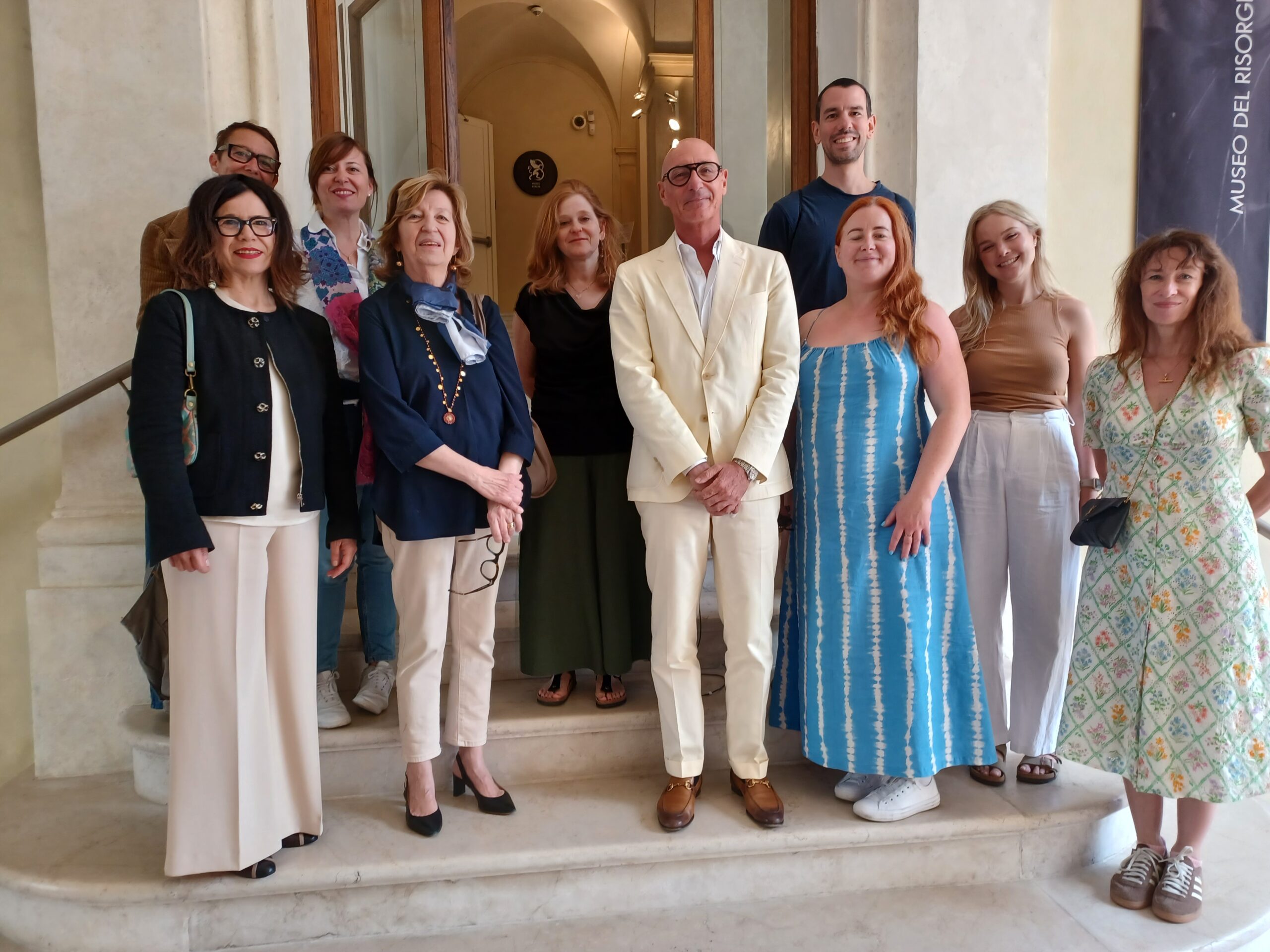 I Musei Byron e del Risorgimento sono sempre più al centro dell’attenzione della grande stampa internazionale, oltre che meta sempre più ricercata dai turisti di tutto il mondo, anglosassone e non. Oggi una delegazione di inviati e giornalisti inglesi, organizzata da Apt Servizi Emilia Romagna in collaborazione con l’Ufficio Turismo del Comune di Ravenna, ha visitato i Musei dedicati al grande poeta romantico inglese ed al Risorgimento, guidati dalla Presidente della Fondazione Cassa di Risparmio di Ravenna Mirella Falconi Mazzotti, dalla Direttrice dei Musei Alberta Fabbri e dal Vice Presidente dell’Italian Byron Society, nonché professore ordinario di letteratura inglese all’Università di Parma, Diego Saglia. I giornalisti sono rimasti incantati dalla bellezza delle sale, conquistati dalla modernità delle narrazioni multimediali sia di Byron che del Risorgimento, ed hanno chiesto più volte di rivedere e approfondire alcuni dei ‘tesori’ dei Musei, dalle preziosissime prime edizioni ai cimeli collezionati gelosamente da Teresa Guiccioli per il proprio amato e arrivati fino ai giorni nostri. Il professor Saglia è stato straordinariamente coinvolgente nel racconto, sia del significato dei documenti contenuti nelle vetrine, sia nel racconto emotivo della sua esperienza con la Regina britannica Camilla, che ha ovviamente appassionato gli inviati come continua a fare, ad oltre un mese dall’evento del 10 aprile scorso, con tantissime persone ospiti a Ravenna. Saglia ha strappato sorrisi e applausi e raccontato per la prima volta anche l’aneddoto di una Regina che voleva proseguire e visitare anche un numero maggiore di sale rispetto a quelle previste dalla severissima agenda e dai tempi della visita reale, ma il personale del cerimoniale inglese e della sicurezza l’hanno quasi costretta a invertire il suo percorso ed avviarsi verso l’uscita dove Re Carlo, reduce da San Vitale, era invece già arrivato ad attenderla. La delegazione della grande stampa internazionale in visita ai Musei Byron e del Risorgimento era composta da Karen Edwards, di High Life, magazine di British Airways, Danielle Mitzman di Monocle Radio Londra, Alex salakis del The Times – Italian Magazine, Donna Smiley di Fabolous Magazine, che fa parte del gruppo di The Sun, Jordan Raynolds dell’agenzia PA Media ed Emma Cook del The Observer.