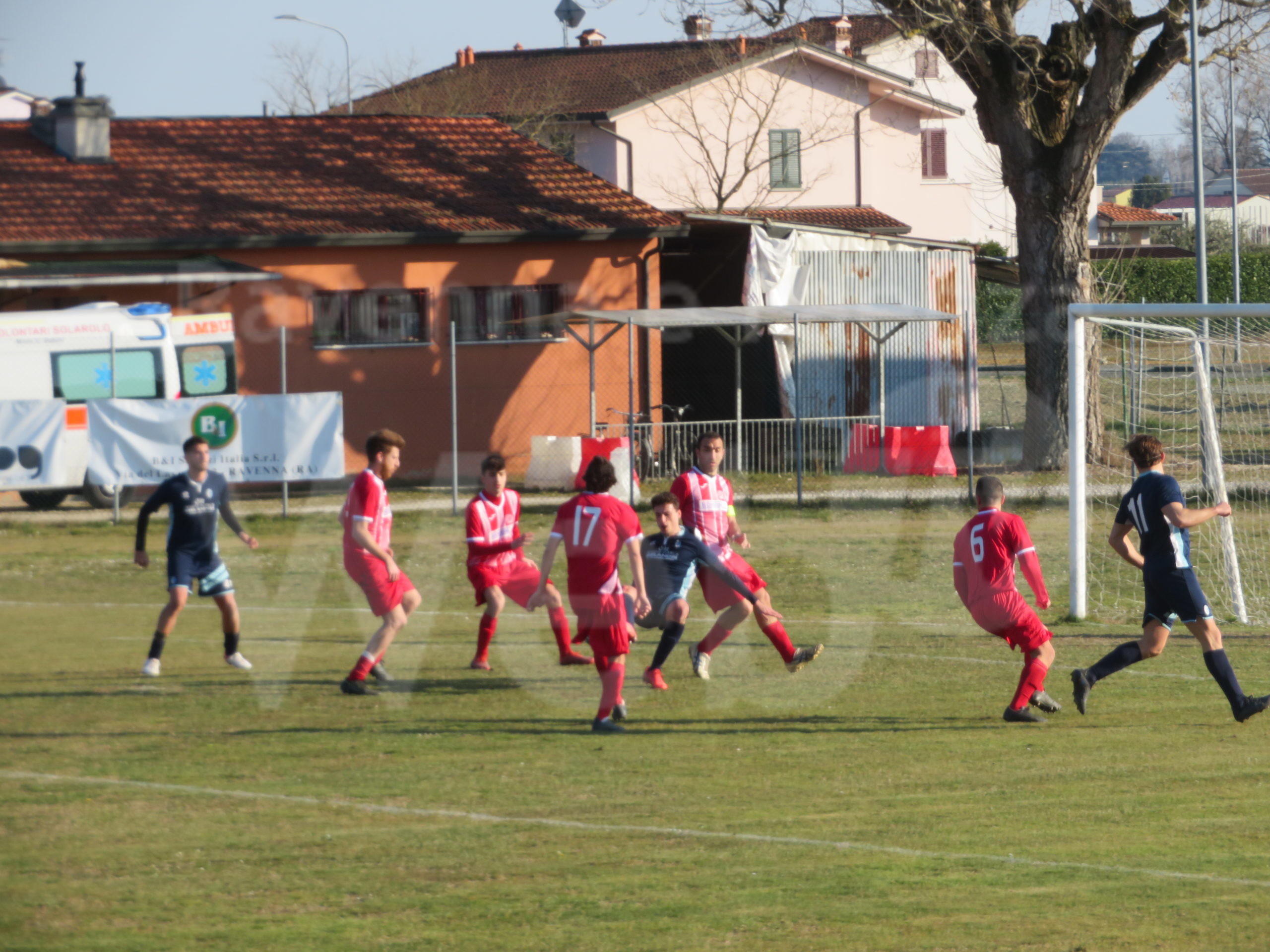 L’ultima opportunità è per il Solarolo con la fuga in contropiede di Koauakou che entrato in area sull’uscita disperata di Tassinari, cerca l’incrocio sul secondo palo, ma angola troppo la mira e la palla scivola a lato sul fondo.