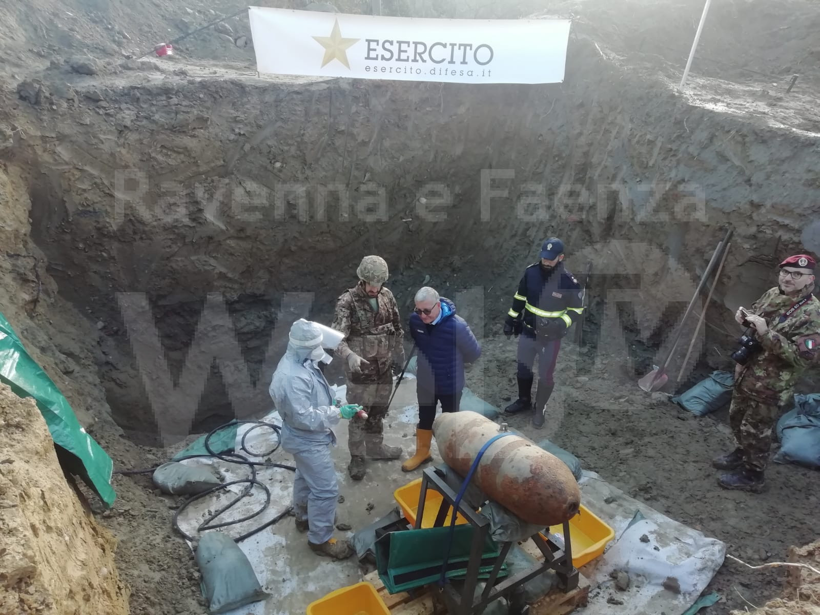 Le operazioni, coordinate dalla Prefettura di Ravenna e dal Comando Forze Operative Nord dell’Esercito erano iniziate stamattina presto con l’evacuazione di 80 persone e la chiusura della Provinciale Brisighella se, riaperta dopo alcune ore. La bomba è stata portata in un luogo sicuro (cava Soglia) e qui è avvenuto in condizioni di sicurezza l’intervento di estrazione che ha richiesto oltre tre ore; infine è avvenuto il brillamento. Oltre 100 operatori sono stati impegnati tra militari, volontari, forze dell’ordine e polizia locale, vigili del fuoco, croce rossa militare. Il centro per seguire le operazioni, era stato allestito dall’unione della Romagna Faentina a Casale in un’azienda locale, il tutto sotto il coordinamento della Prefettura ravennate.
