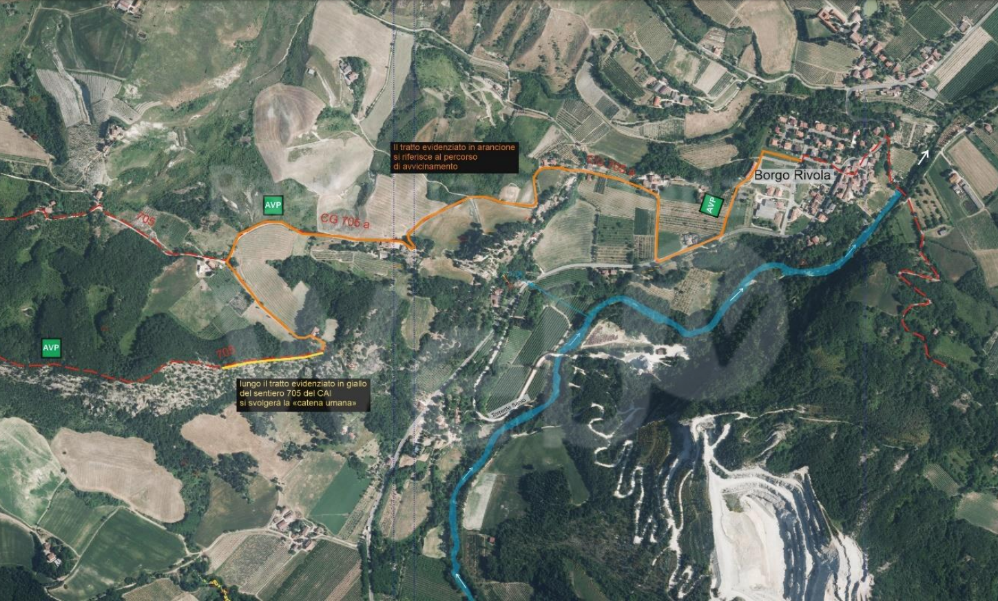 “Dal punto di concentramento attraverseremo il sentiero CAI 705a per raggiungere Sasso Letroso. Da qui alle ore 19:00 circa partirà una “catena umana” sul sentiero CAI 705, dove esprimeremo la nostra forte posizione contraria ad uno scenario di possibile ampliamento della cava. Invitiamo tutte e tutti coloro che abbiano a cuore il destino della Vena del Gesso a partecipare”